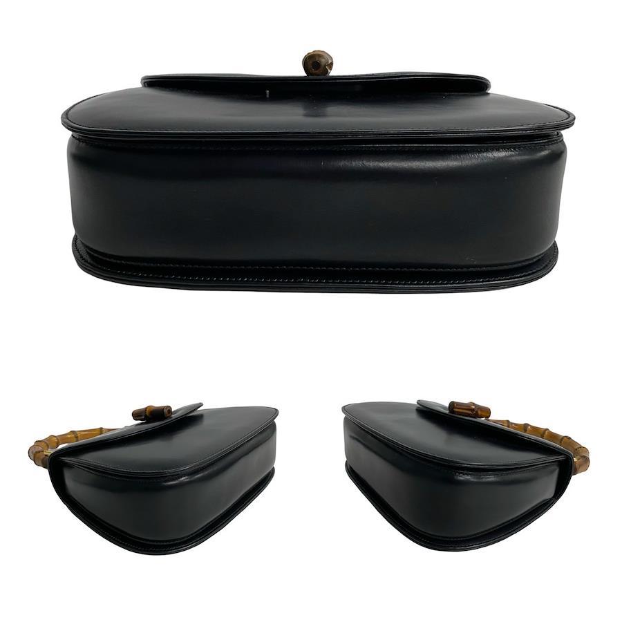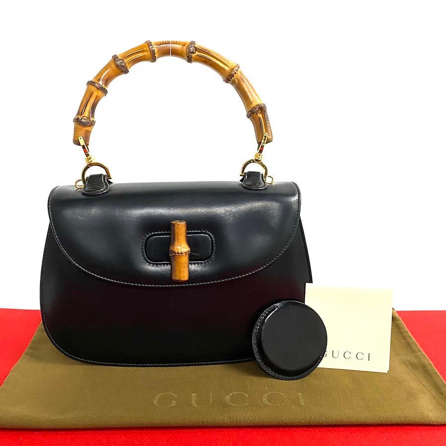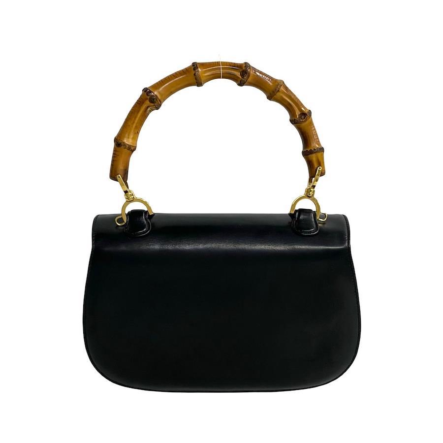 Rare GUCCI Old Gucci Vintage Bamboo Leather Genuine Leather Turnlock Handbag Mini Tote Bag Black 37426
