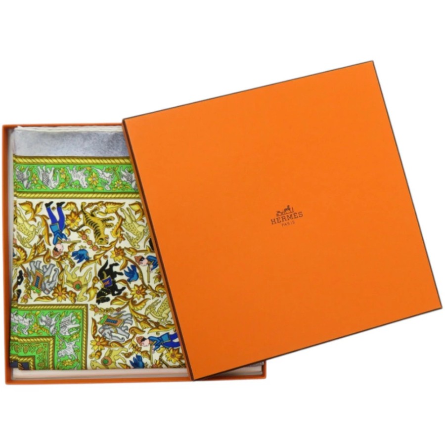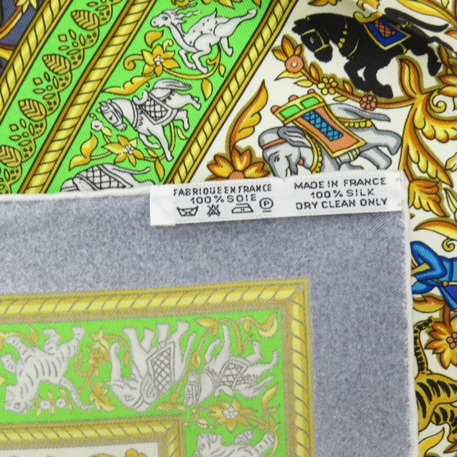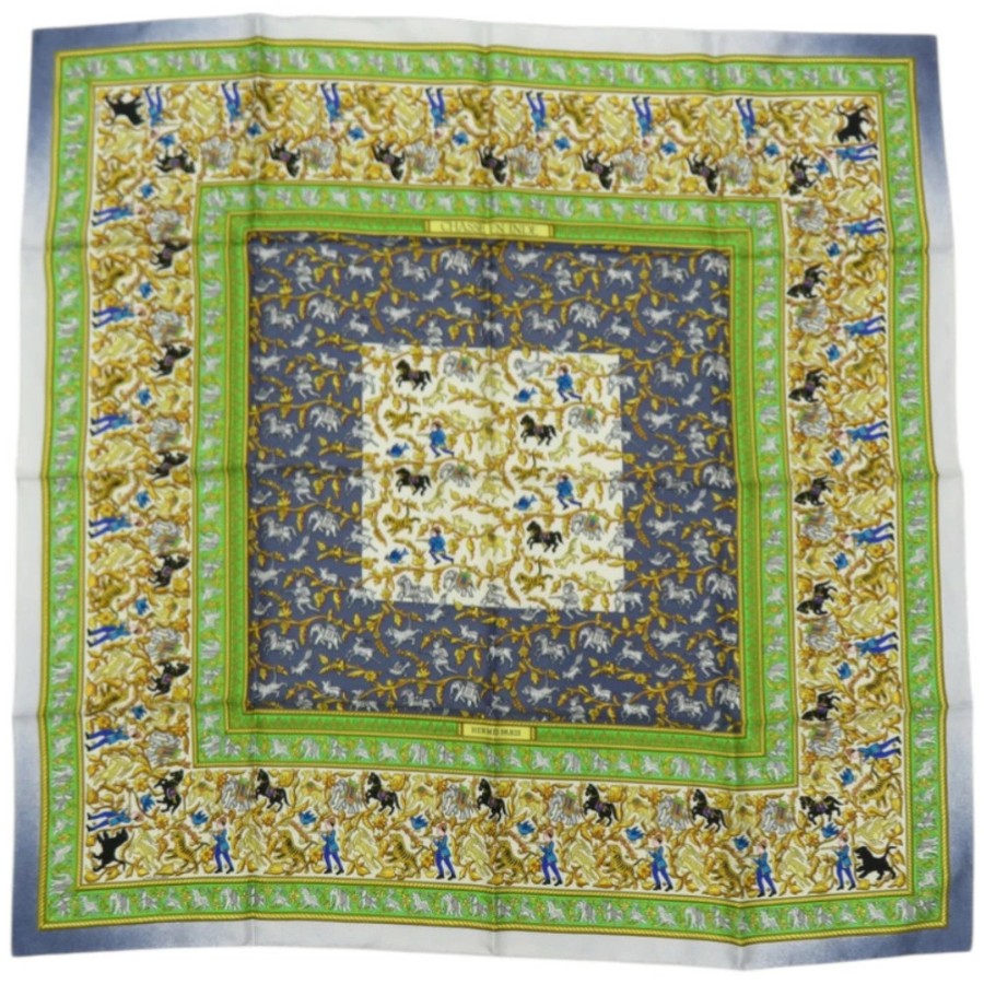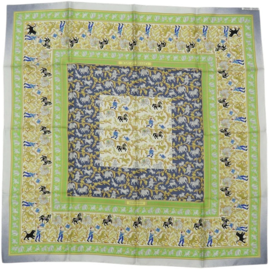 新品同様 エルメス カレ90 CHASSE EN INDE インドの狩猟 シルク グリーン スカーフ 0476【中古】HERMES