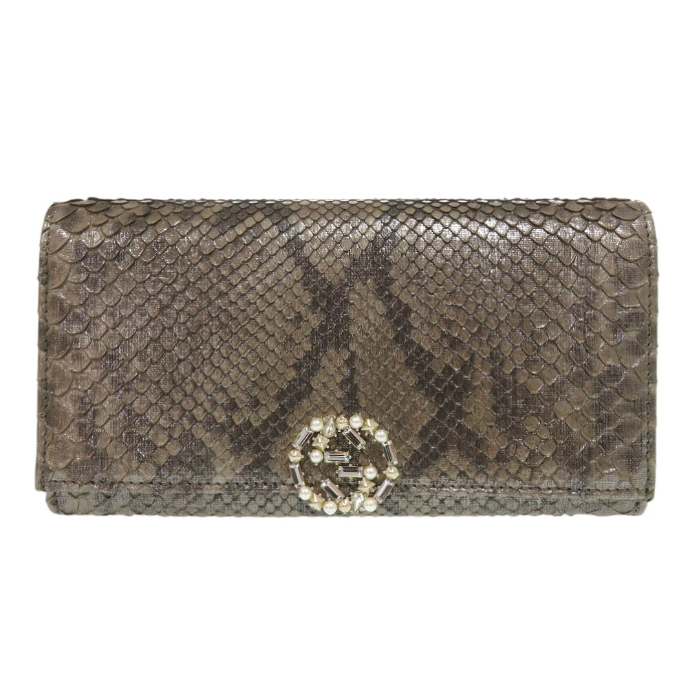 Like new Gucci Continental Wallet 369670 Python with GG Sparkling Brown Leather, 0339 [Pre-owned] GUCCI