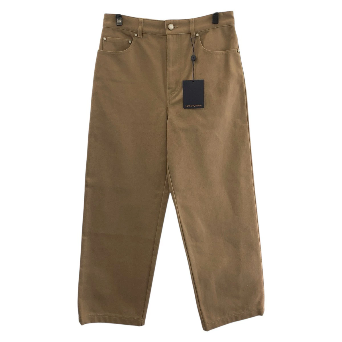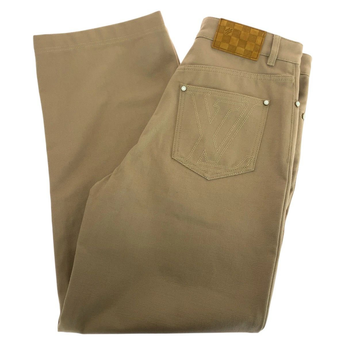Brand new, unused LOUIS VUITTON 2025 Spring/Summer logo stitched work denim pants, size 46, beige cotton/leather, RM251MQ LPJ HSP47W, men's long pants, 505665. [Pre-owned]