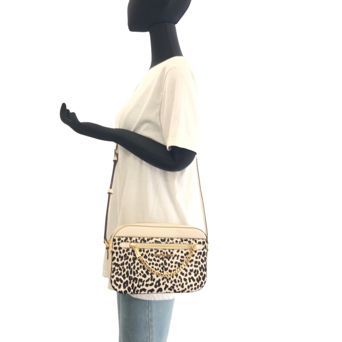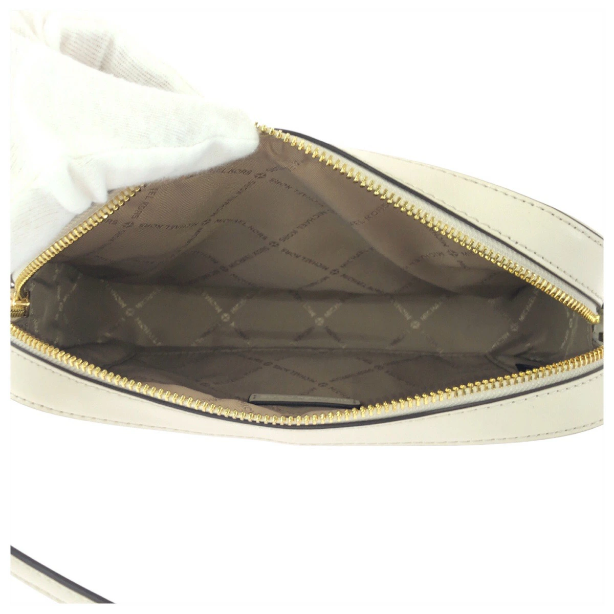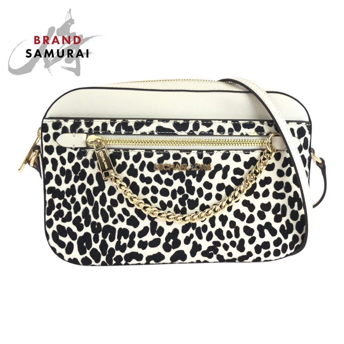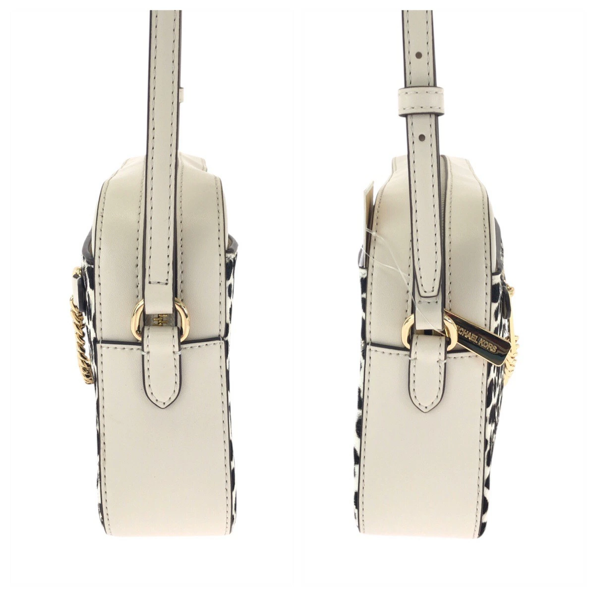 Brand new, unused Michael Kors white pony/leather shoulder bag with gold hardware, 502728 (pre-owned)