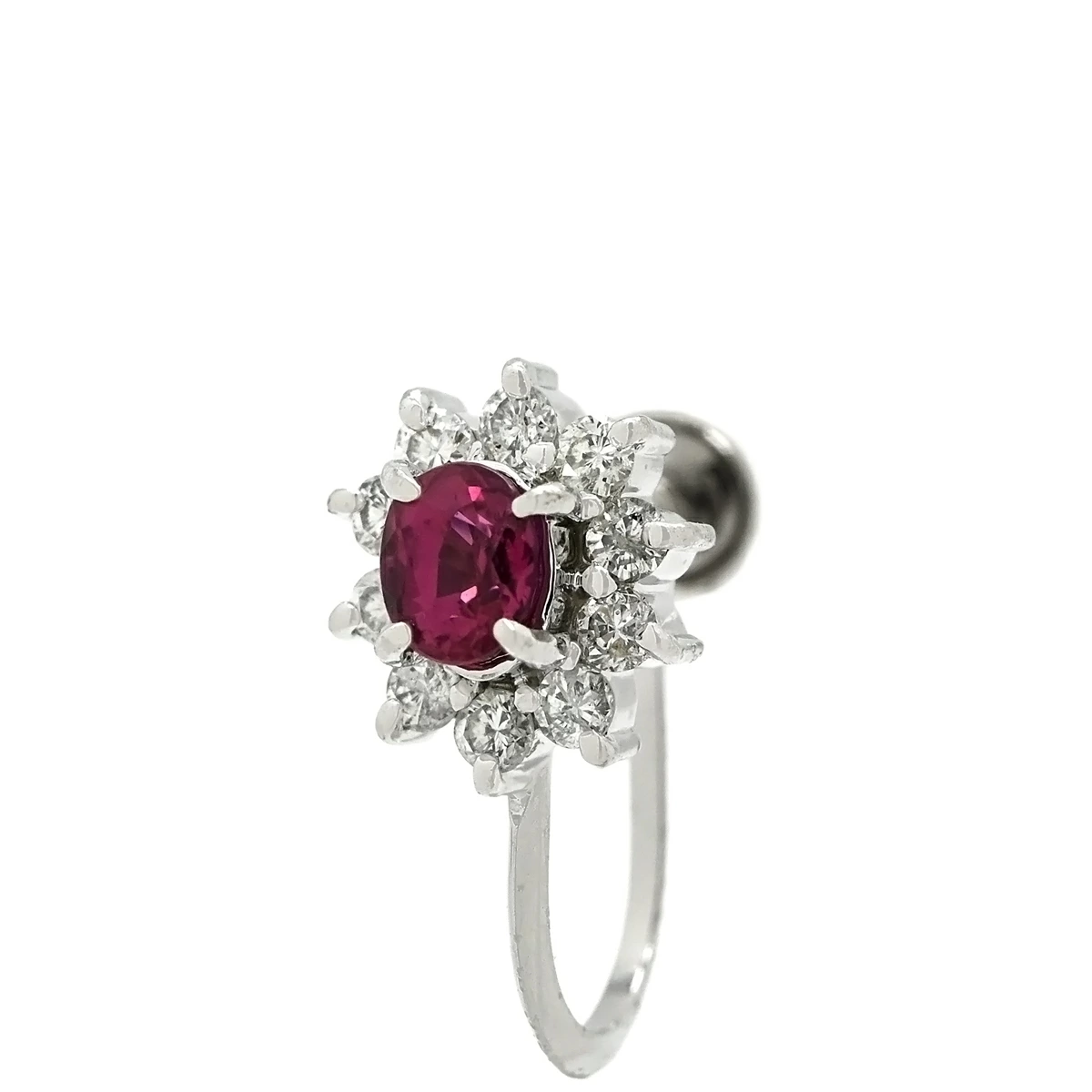 ▲クリックで拡大されますノンブランド NON BRAND イヤリング ルビー ダイヤ イヤリング 片耳用 Pt ルビー ダイヤモンド プラチナシルバー Pt900 レッド 赤 - レディース 【中古】