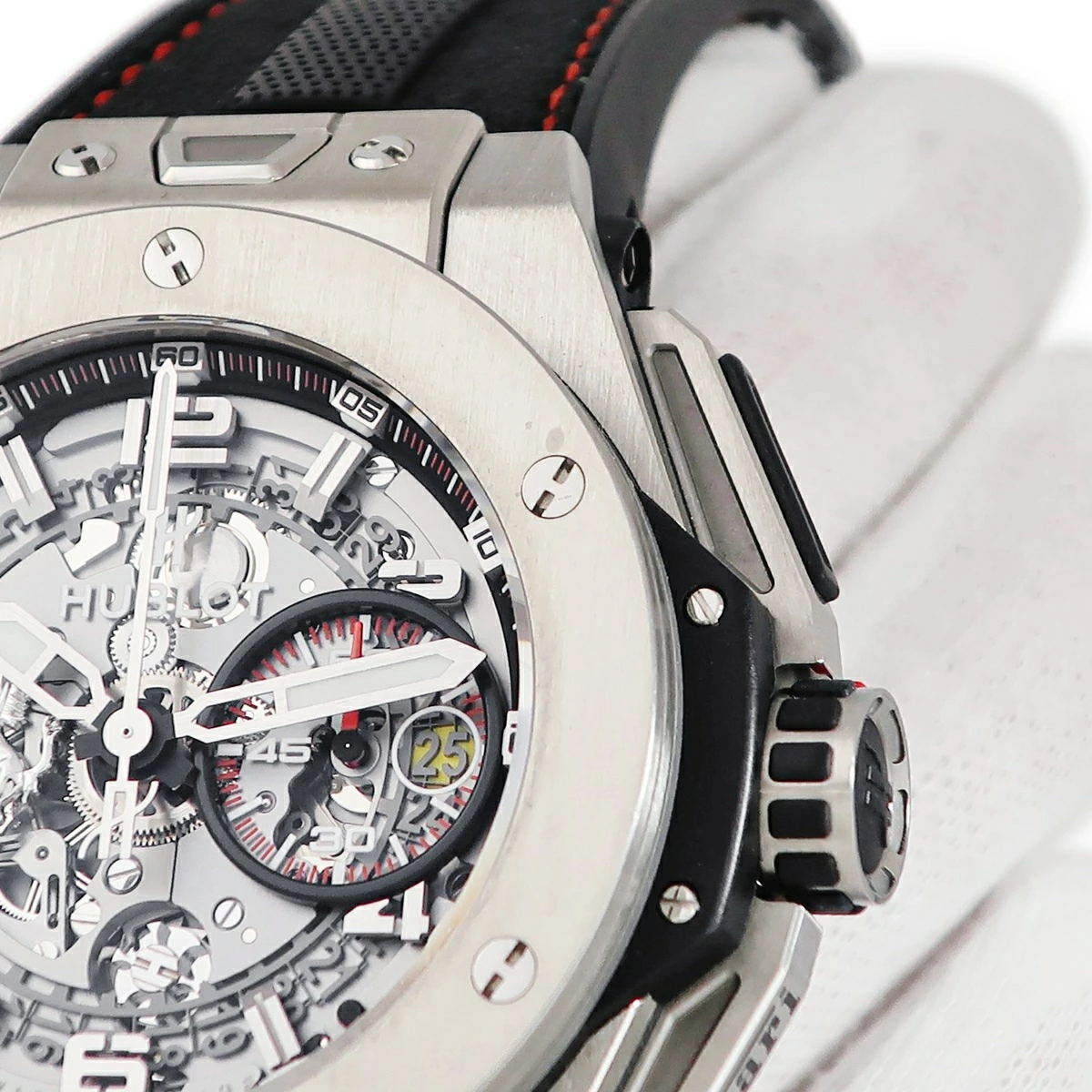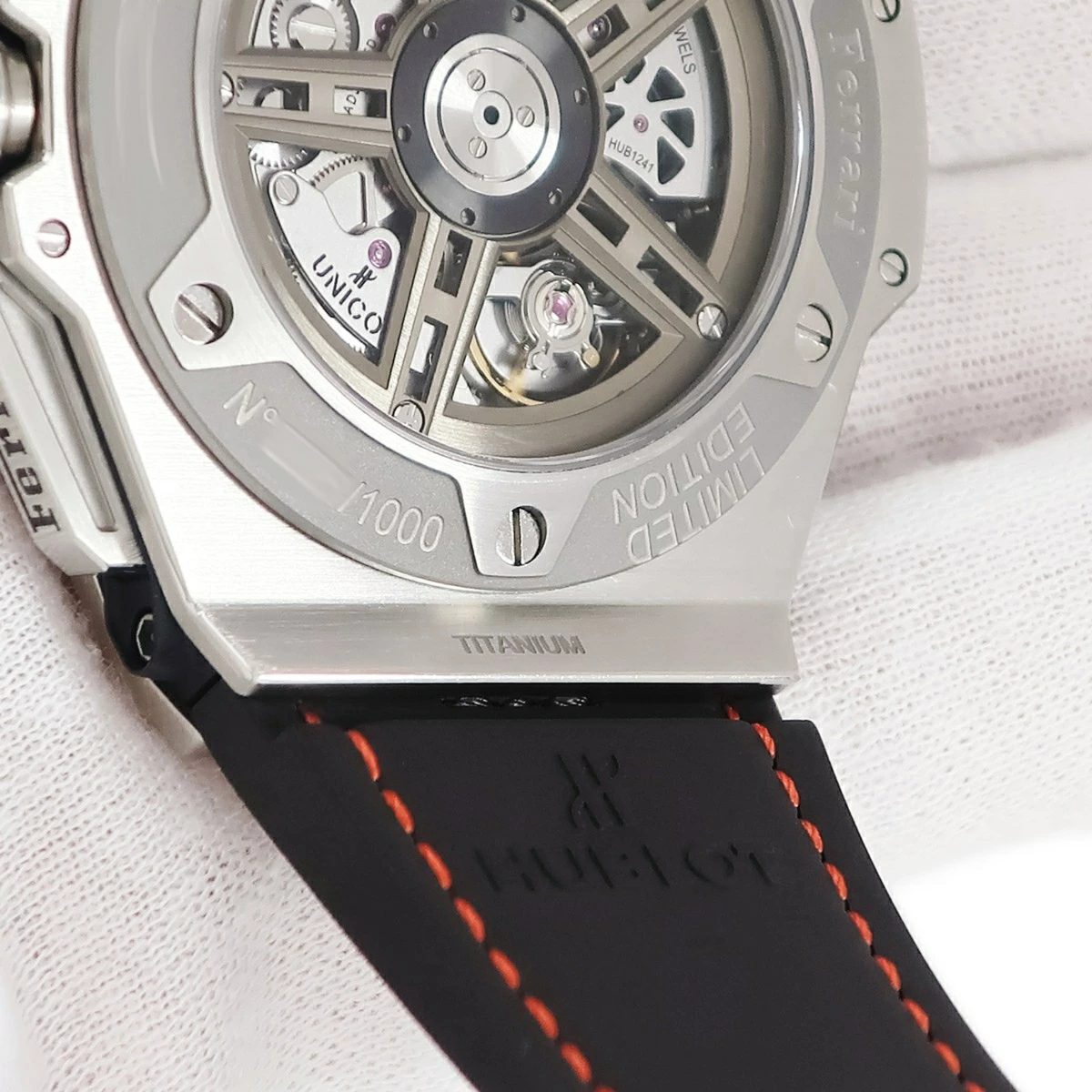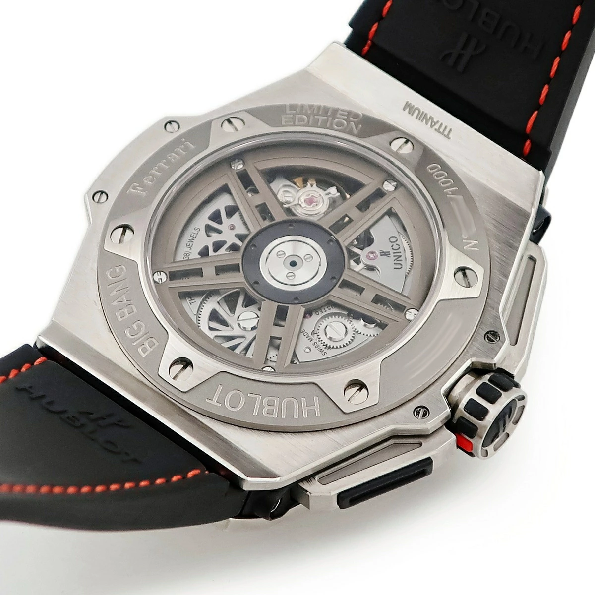 ウブロ HUBLOT ビッグバン フェラーリ チタニウム 401.NX.0123.VR 跳ね馬 コラボ スケルトン 限定 メンズ 腕時計自動巻き シルバー 【中古】【店頭受取不可】