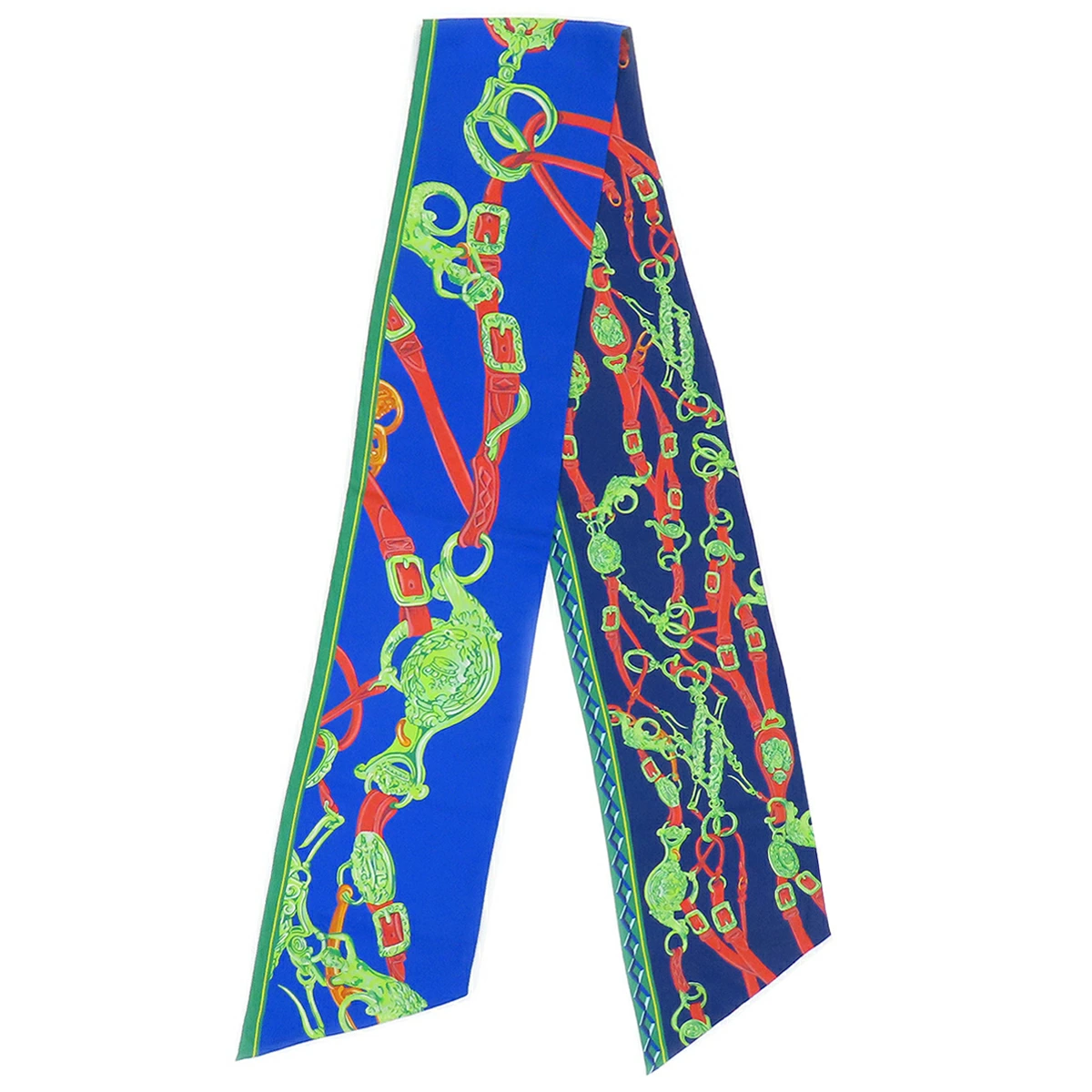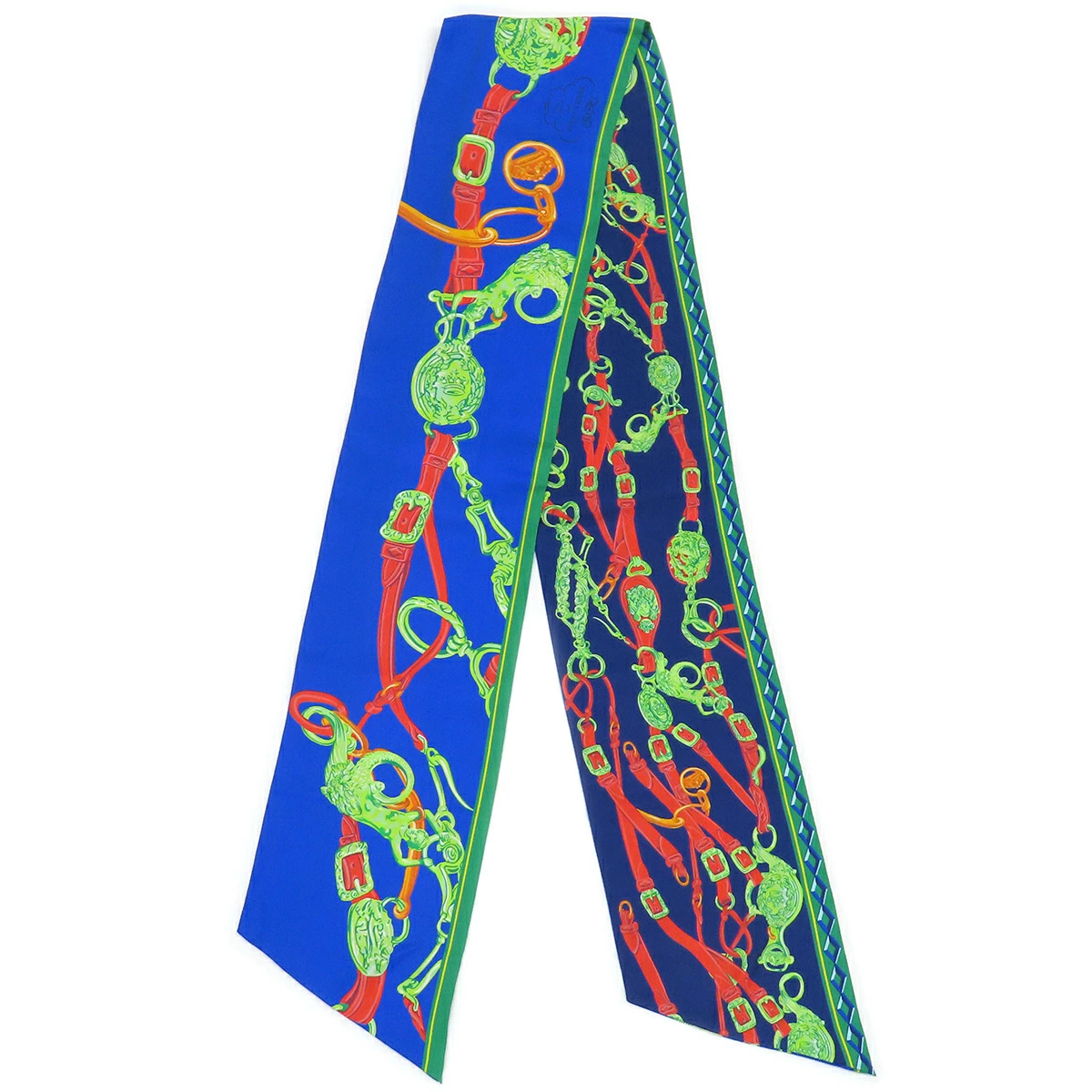 ▲クリックで拡大されますエルメス HERMES マキシツイリー スカーフ シルク ブルー×グリーン 【BRIDES de GALA/式典用馬勒】 - レディース 【箱】定番 人気 美品 【中古】