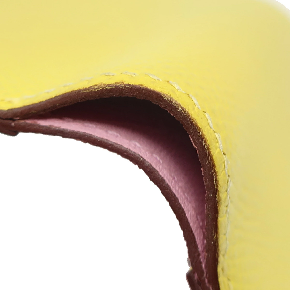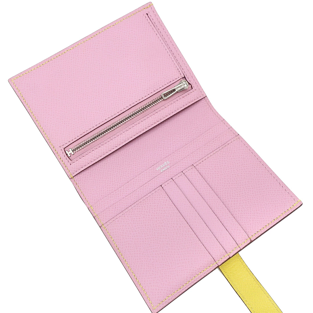 エルメス HERMES ベアンコンパクト ヴェルソ ベアン 二つ折り財布 ヴォーエプソン ライム×モーヴシルベストル 黄色 ピンク バイカラー シルバー金具 D刻印 - レディース 【箱】定番 人気 美品 【中古】 管理コード240504037144 全体コンディション詳細: ご使用や保管により軽度のダメージがございますが、比較的状態の良いお品です。※画像、コメント欄参照 コンディション詳細:中古美品 【外側】表面に僅かな薄汚れ、四つ角やコバに擦れや割れ、金具に擦れや傷【内側】ポケット内側に薄汚れ、小銭汚れ【におい】保管臭【刻印箇所】オープンポケット内側