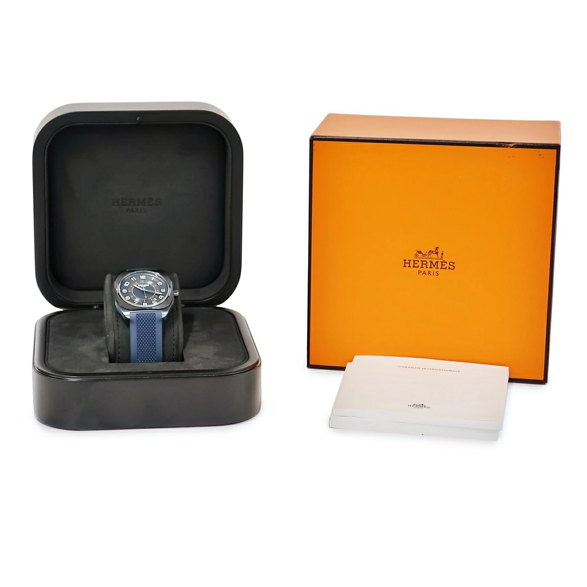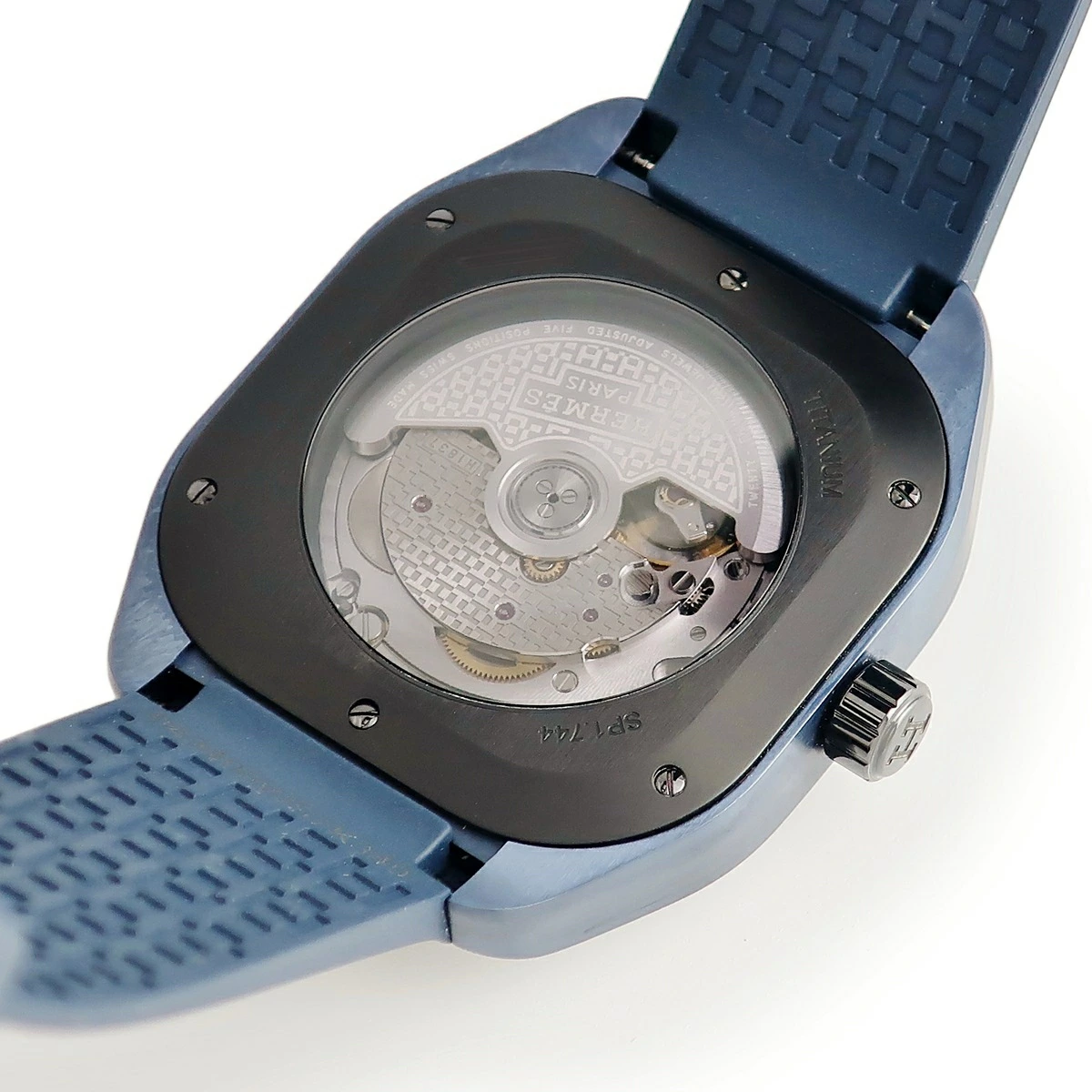 エルメス HERMES H08 エクストララージ SP1.744 新品同様 ブルーチタン PVD アラビア 角型 軽量 メンズ 腕時計自動巻き ネイビー 【中古】【店頭受取不可】