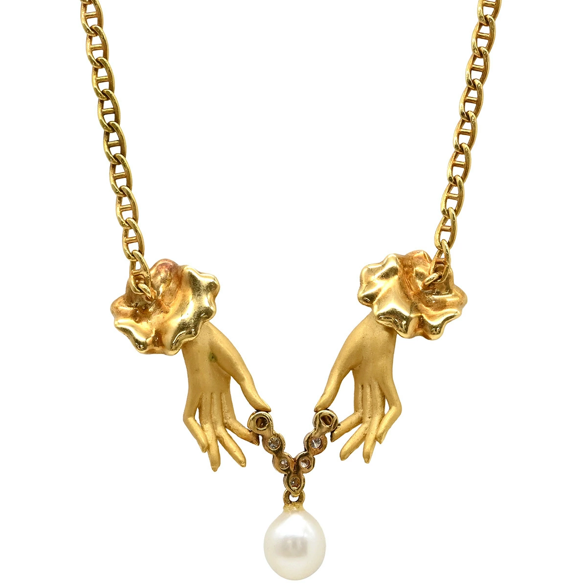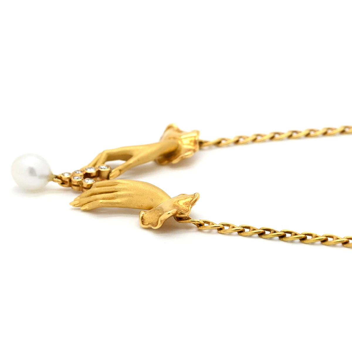 ▲クリックで拡大されますカレライカレラ Carrera y Carrera ネックレス ハンドモチーフ K18YG ダイヤモンド パール イエローゴールド 18金 手モチーフ - レディース定番 人気 美品 【中古】