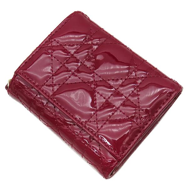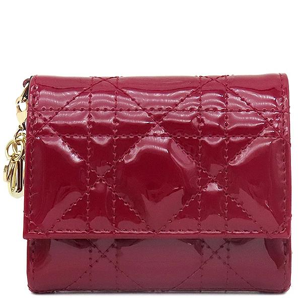 ▲クリックで拡大されますクリスチャン・ディオール Christian Dior 三つ折り財布 レディディオール ロータス ウォレット カナージュ カーフ チェリーレッド 赤 チャーム付き ゴールド金具 S0181OVRB_M323 レディース 【箱】定番 人気 美品 【中古】