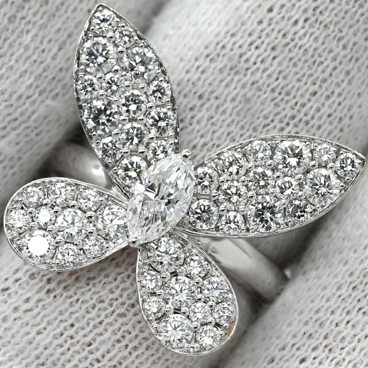 ▲クリックで拡大されますグラフ GRAFF リング 指輪 ミニパヴェ バタフライ ダイヤモンド バタフライ K18WG ダイヤモンド ホワイトゴールド GRAFF ホワイトゴールド K18WG 蝶 マーキスカット - 5.5号 レディース 【箱】定番 人気 美品 【中古】