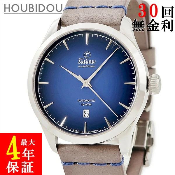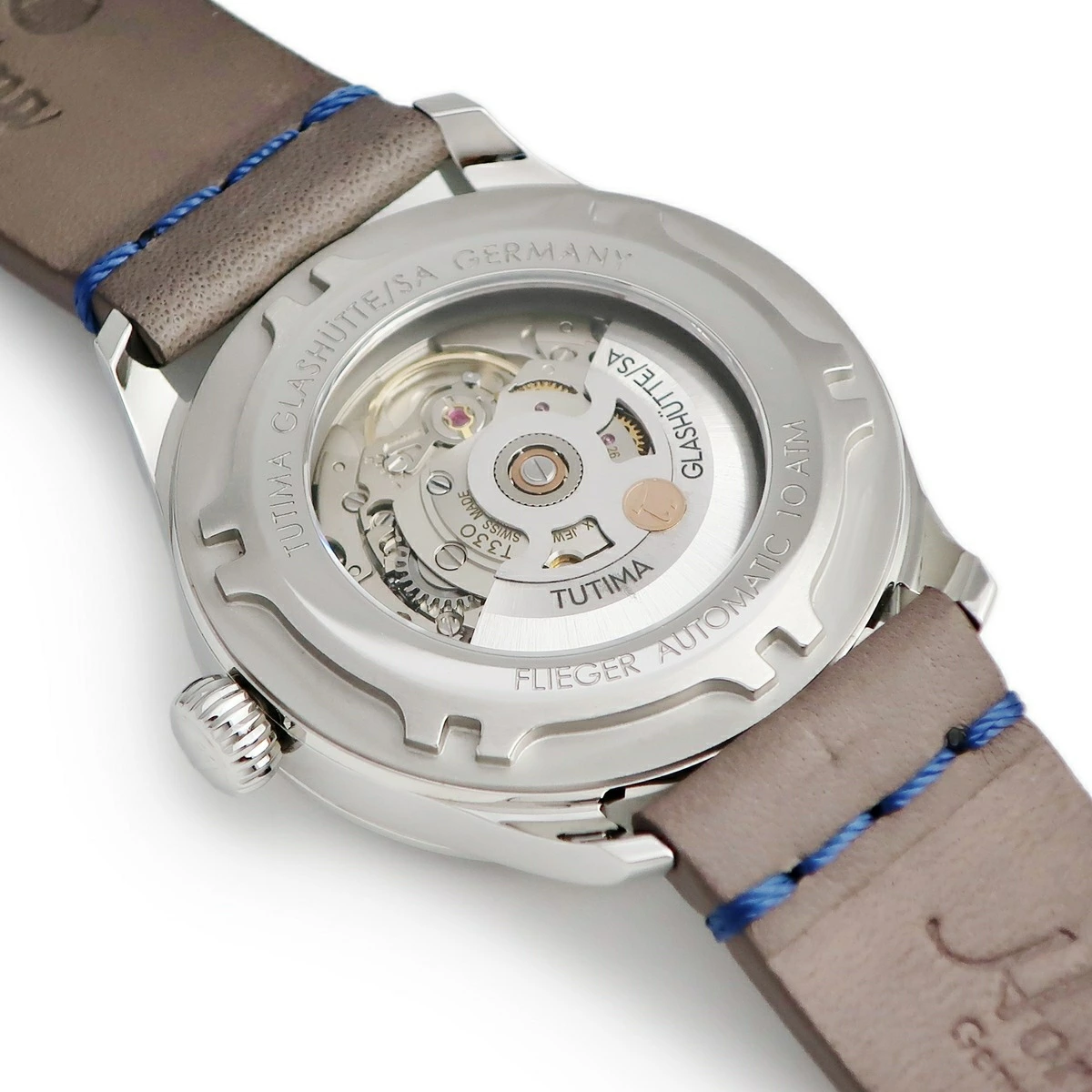 チュチマ Tutima フリーガー エアロクラブ デイト 6105-53 新品同様 ダークブルー 青 バー シースルーバック メンズ 腕時計自動巻き ブルー 【中古】【店頭受取不可】
