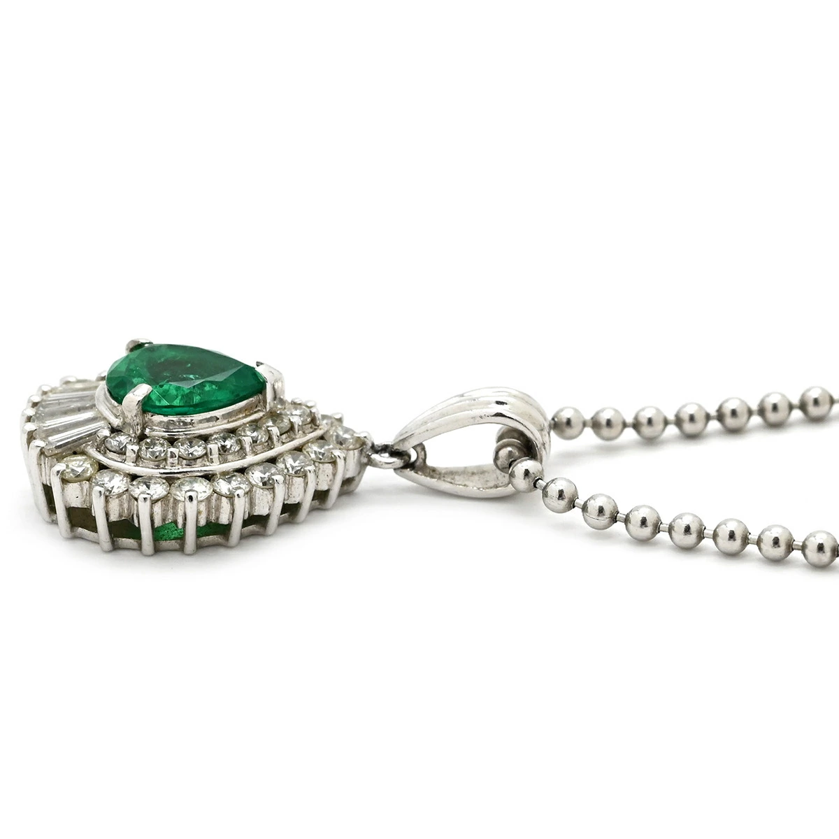 ▲クリックで拡大されますノンブランド NON BRAND ネックレス エメラルド ダイヤ ペンダント Pt900 エメラルド ダイヤモンド Pt850(チェーン) エメラルドグリーン×プラチナシルバー 緑 パヴェダイヤ ドロップ しずく型 プラチナム - レディース定番 人気 美品 【中古】