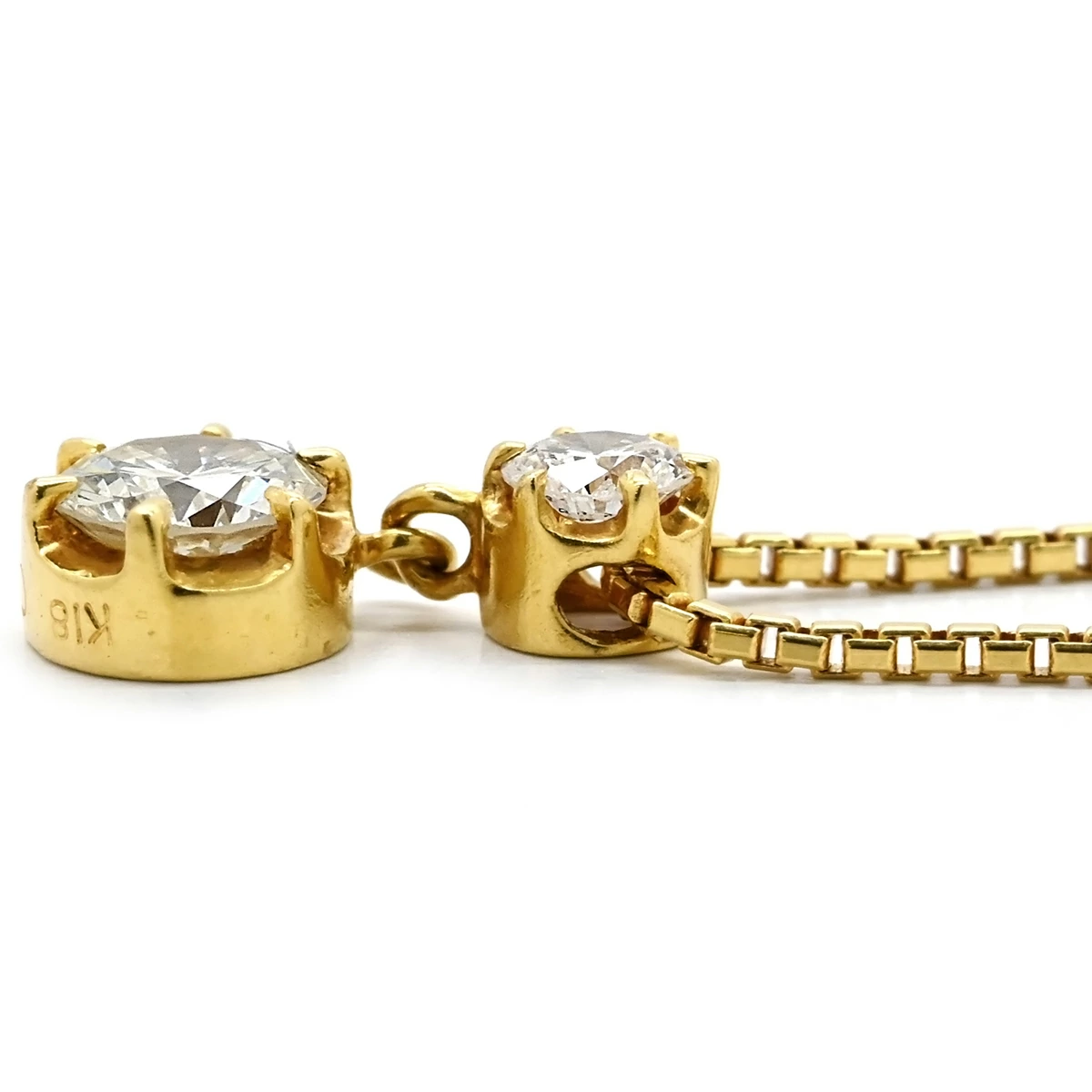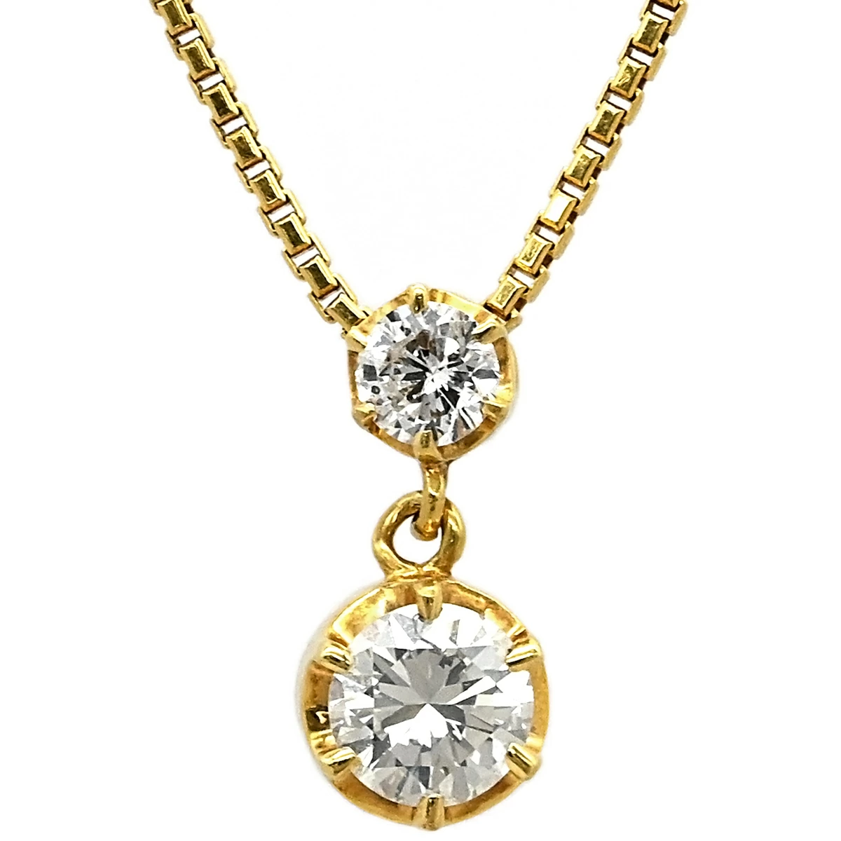 ノンブランド NON BRAND ネックレス ダイヤペンダント K18YG ダイヤモンド イエローゴールド 750 18K 2P 2粒 スイング ドロップ レディース 【中古】