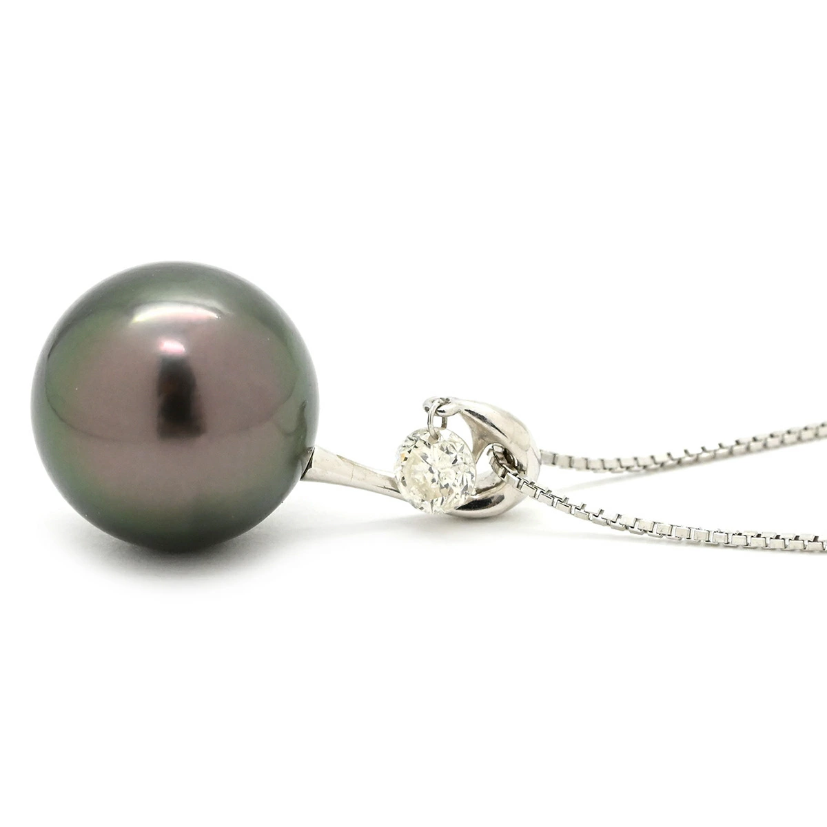 ▲クリックで拡大されますノンブランド NON BRAND ネックレス ネックレス K18WG パール ダイヤモンド パールブラック 黒 黒蝶パール 真珠 750 ホワイトゴールド ブラック パール ダイヤ - レディース定番 人気 美品 【中古】