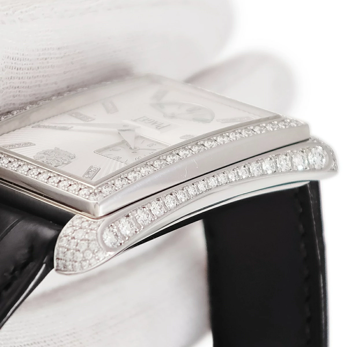 ピアジェ PIAGET エンペラドール G0A33073 K18WG無垢 純正ダイヤモンド スクエア メンズ 腕時計自動巻き シルバー 【中古】【店頭受取不可】 管理コード240500524217 (ムーブメント点検済) (平均日差+8秒) コンディション詳細:中古美品 中古A品(バンドA) (細かなスレ、ケースサイドに線スレ、裏蓋に細かな点キズなどは御座いますが、大きなダメージは無く状態の良い綺麗なお品物です。)