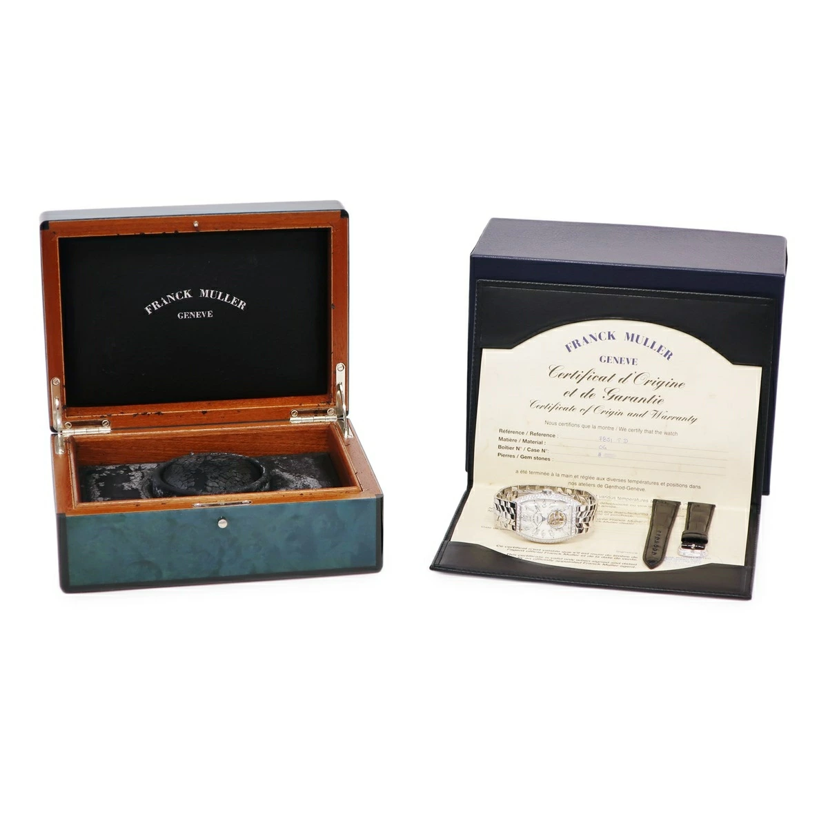 | 付属品 | ギャランティ(購入日未記入/シンガポール)・未使用純正替えクロコベルト(黒/K18WG無垢製尾錠・純正ダイヤ付き)・内外BOX(内箱劣化有) ※記載している物以外の付属品は御座いません。 | |||||||