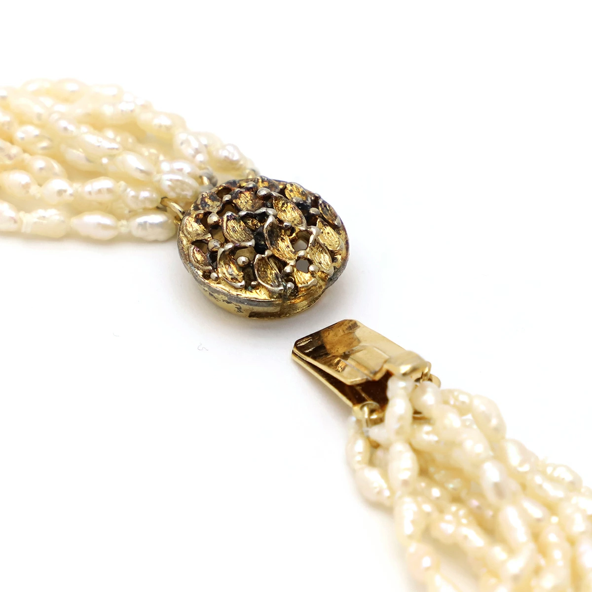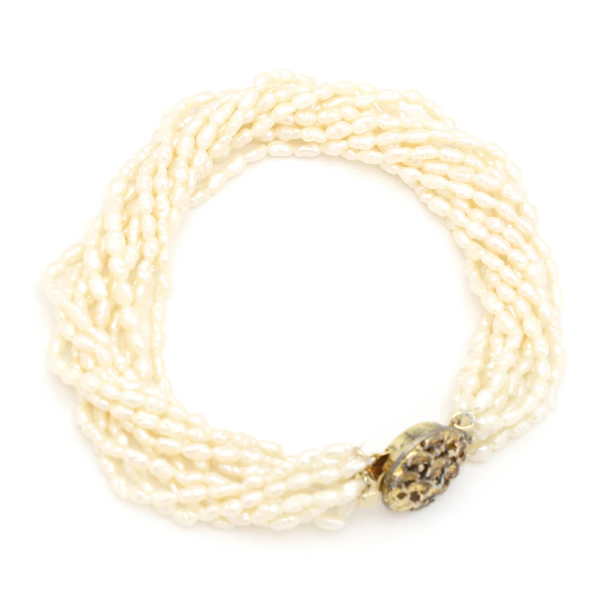 ▲クリックで拡大されますノンブランド NON BRAND ブレスレット 淡水パール 10連 シルバー パール ゴールドXパールホワイト レディース定番 人気 美品 【中古】