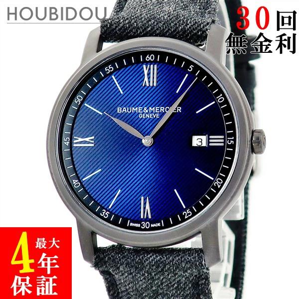 ボーム&メルシエ BAUME&MERCIER クラシマ M0A10780 新品同様 ブラックADLC加工 ブルー 青 デイト ローマン バー メンズ 腕時計クオーツ ブルー 【中古】【店頭受取不可】