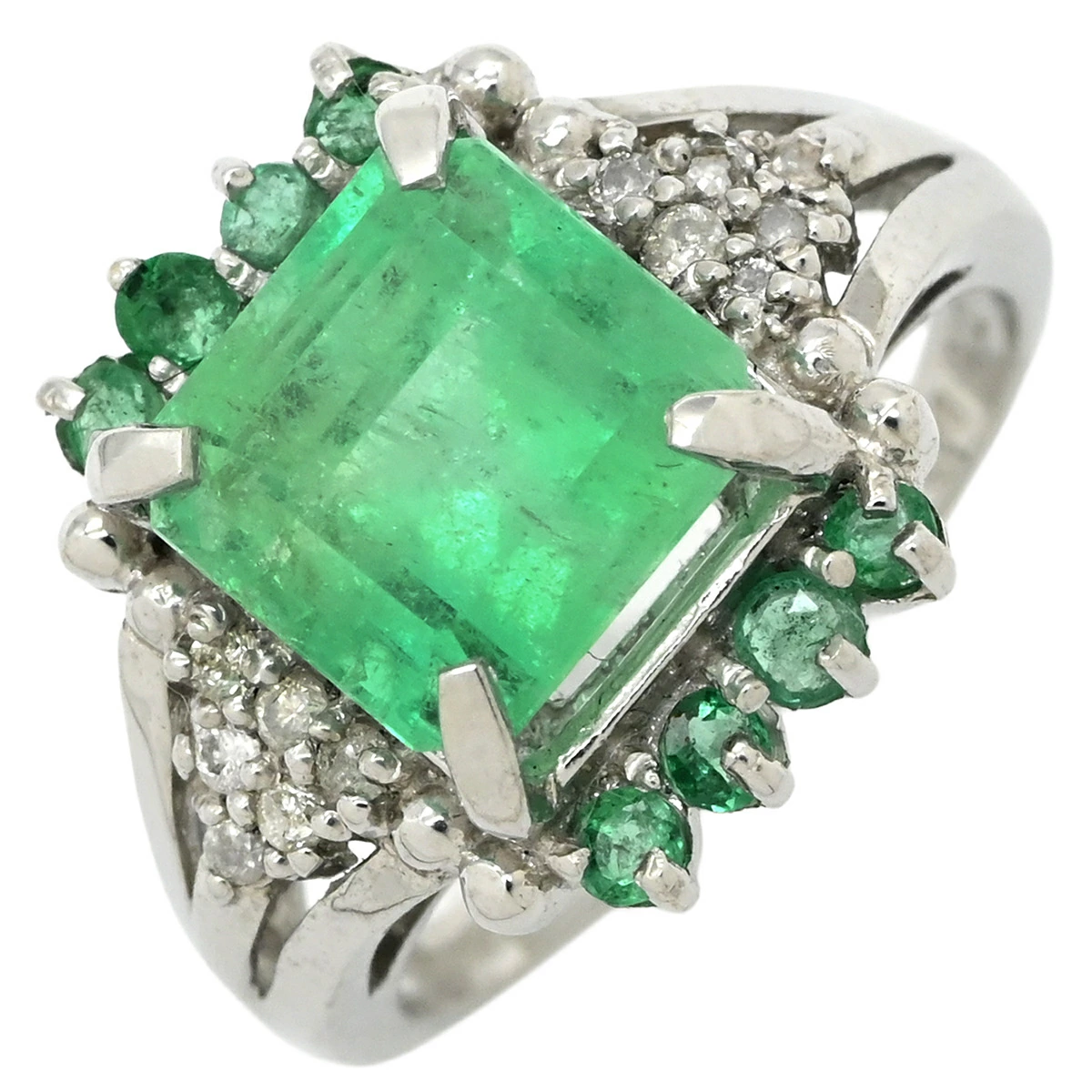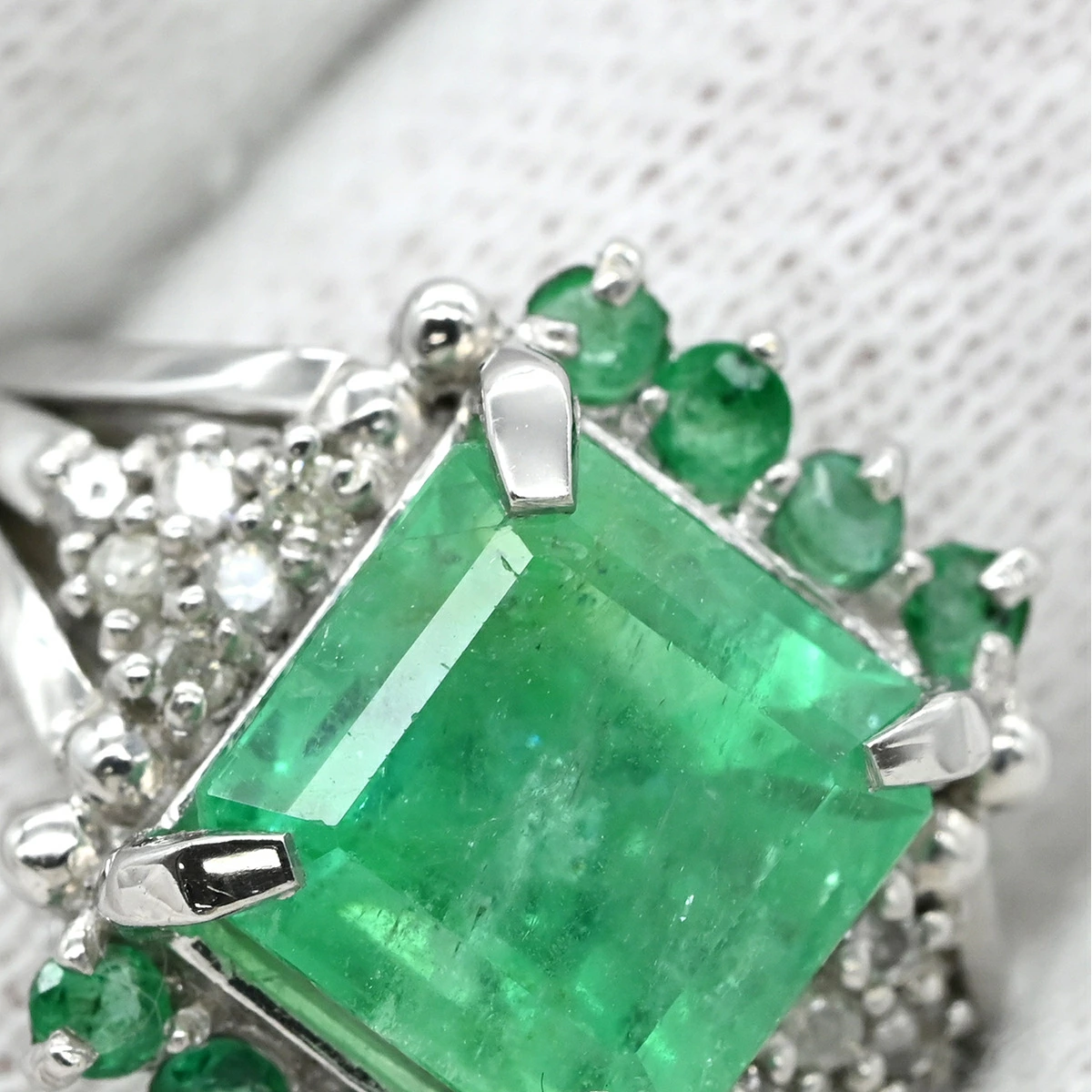 ▲クリックで拡大されますノンブランド NON BRAND リング 指輪 エメラルド ダイヤモンド リング K18WG エメラルド ダイヤモンド ホワイトゴールド グリーン 緑 スクエア - 9号 レディース定番 人気 美品 【中古】