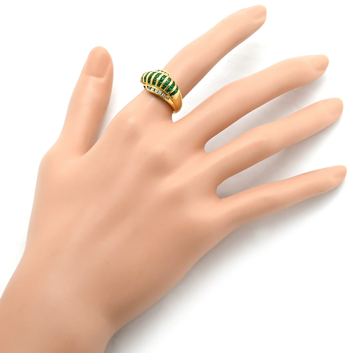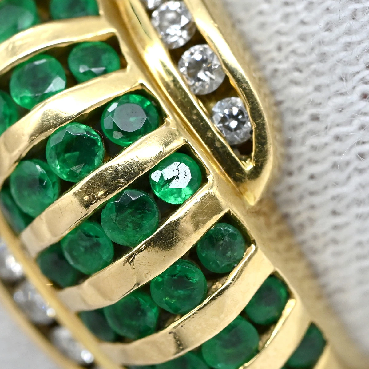 ▲クリックで拡大されますノンブランド NON BRAND リング 指輪 エメラルド 0.72ct ダイヤモンド リング K18YG エメラルド ダイヤモンド イエローゴールド グリーン 緑 ラウンドミックスカット デザインリング AU750 18金 - 10号 メンズ レディース ユニセックス 【中古】