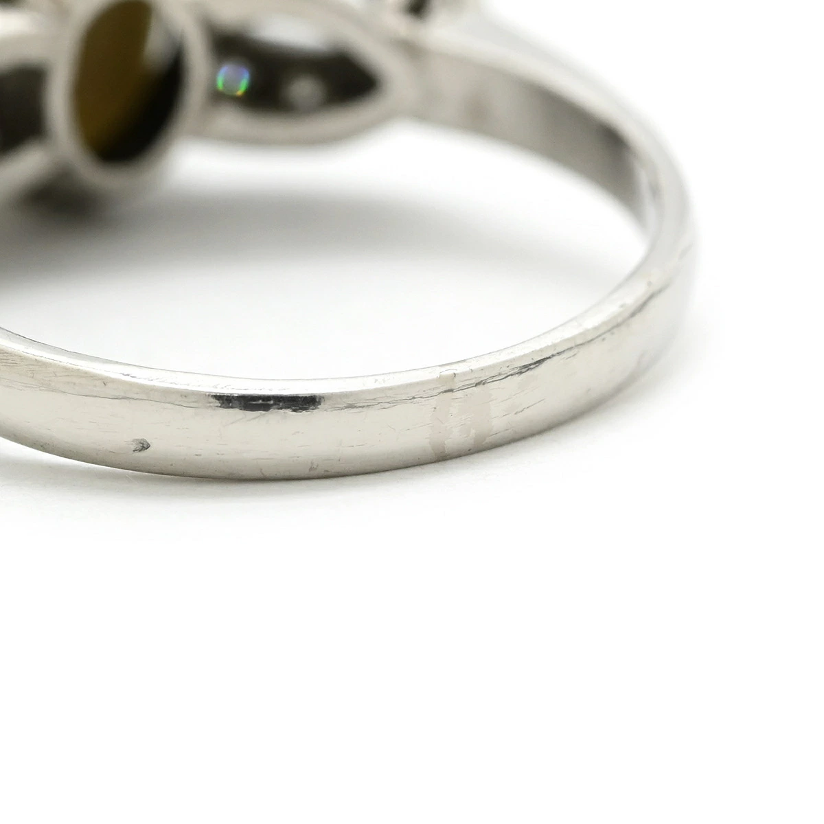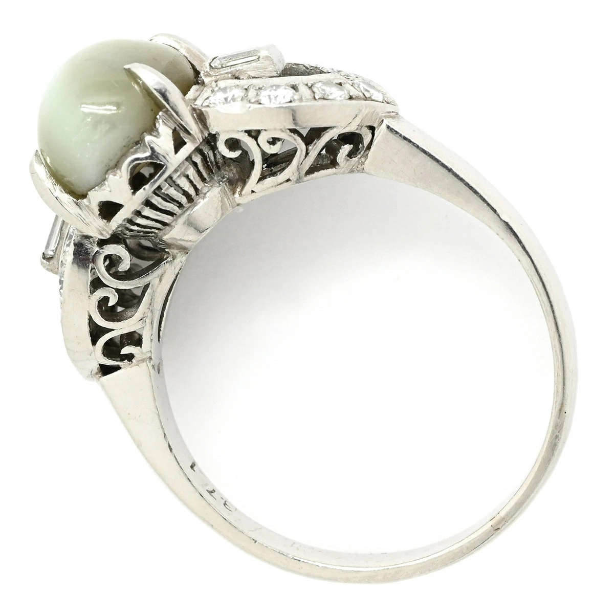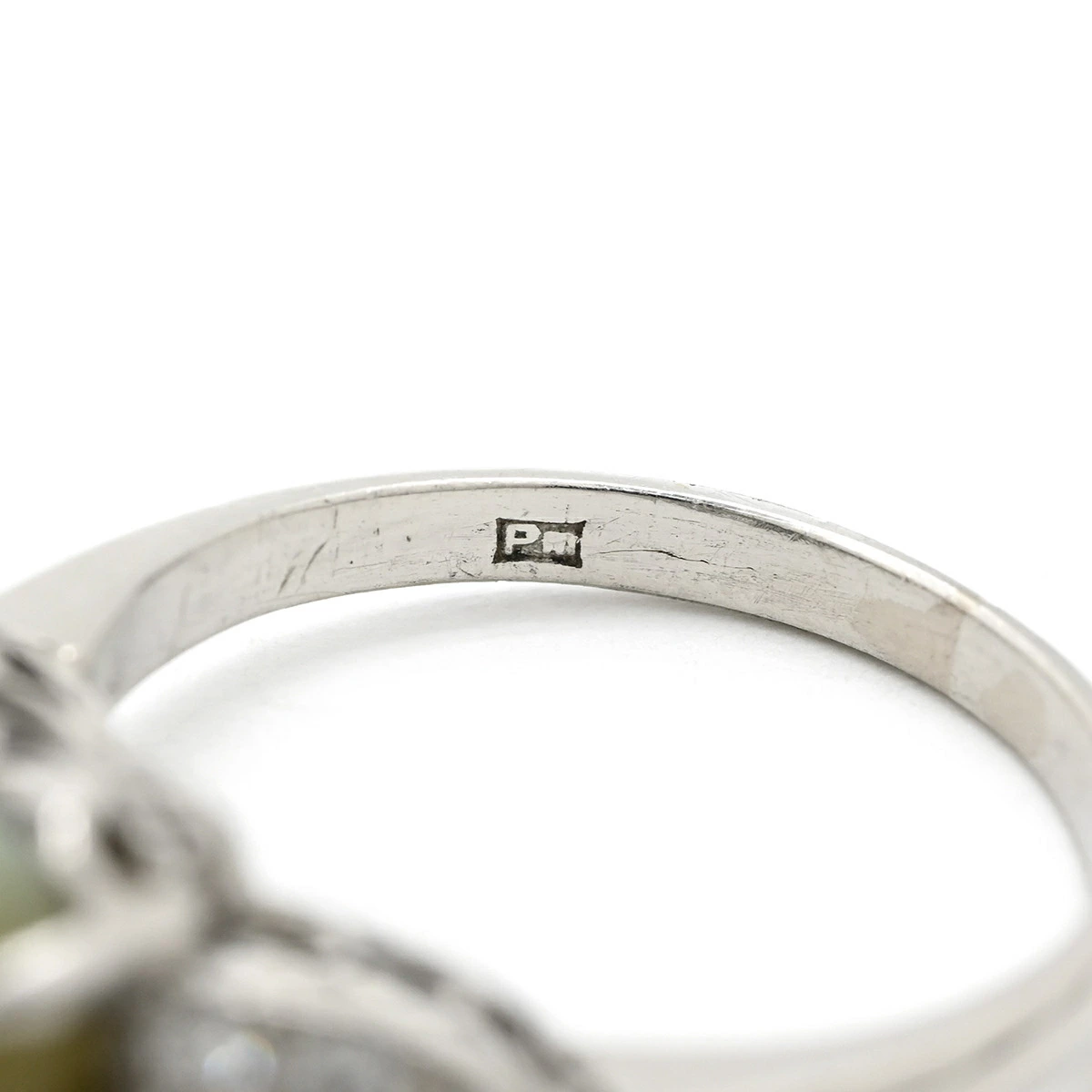 ▲クリックで拡大されますノンブランド NON BRAND リング 指輪 クリソベリルキャッツアイ ダイヤ Pt ダイヤモンド クリソベリルキャッツアイ オリーブグリーン×プラチナシルバー Pt プラチナム 緑 オリーブグリーン オーバル パヴェ バゲットカット 天然石 - 11号 レディース定番 人気 美品 【中古】