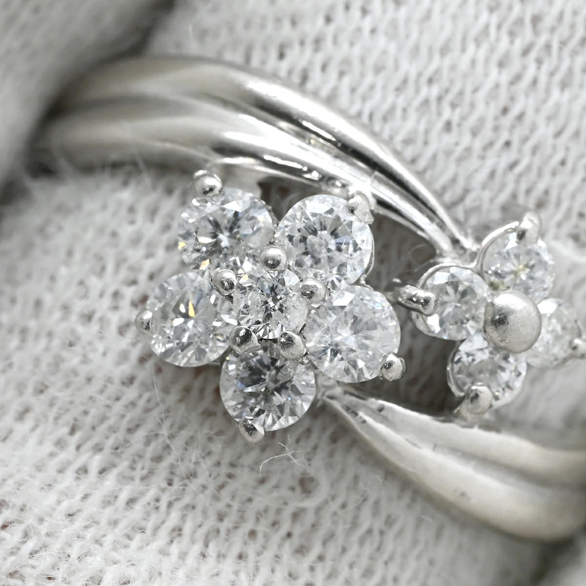 ▲クリックで拡大されますノンブランド NON BRAND リング 指輪 ダイヤモンド リング Pt900 ダイヤモンド プラチナシルバー プラチナム ダイヤ フラワーモチーフ 花 900 - 12.5号 レディース定番 人気 美品 【中古】