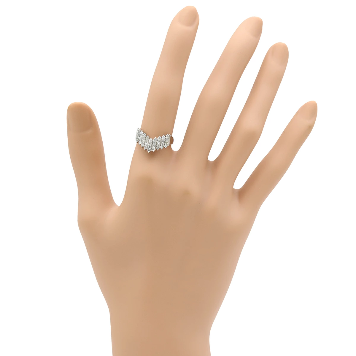 Pre-owned diamond ring in platinum silver with a V-shaped V-line design, size 11.