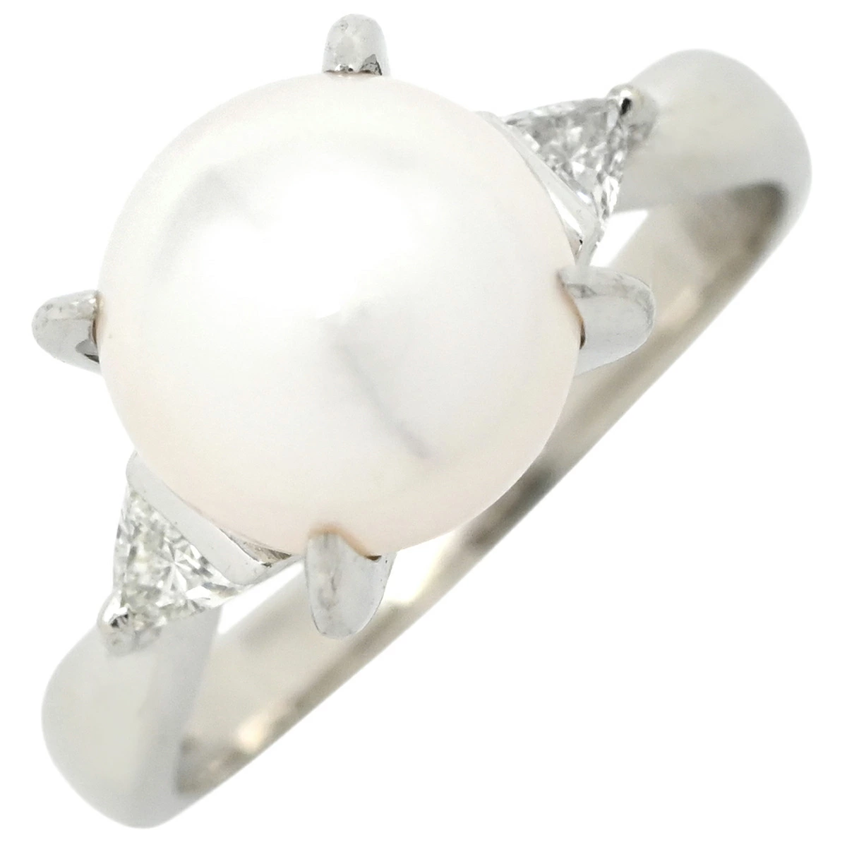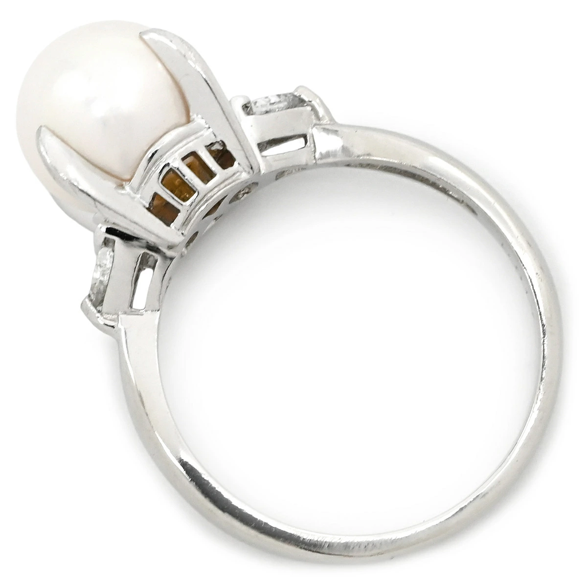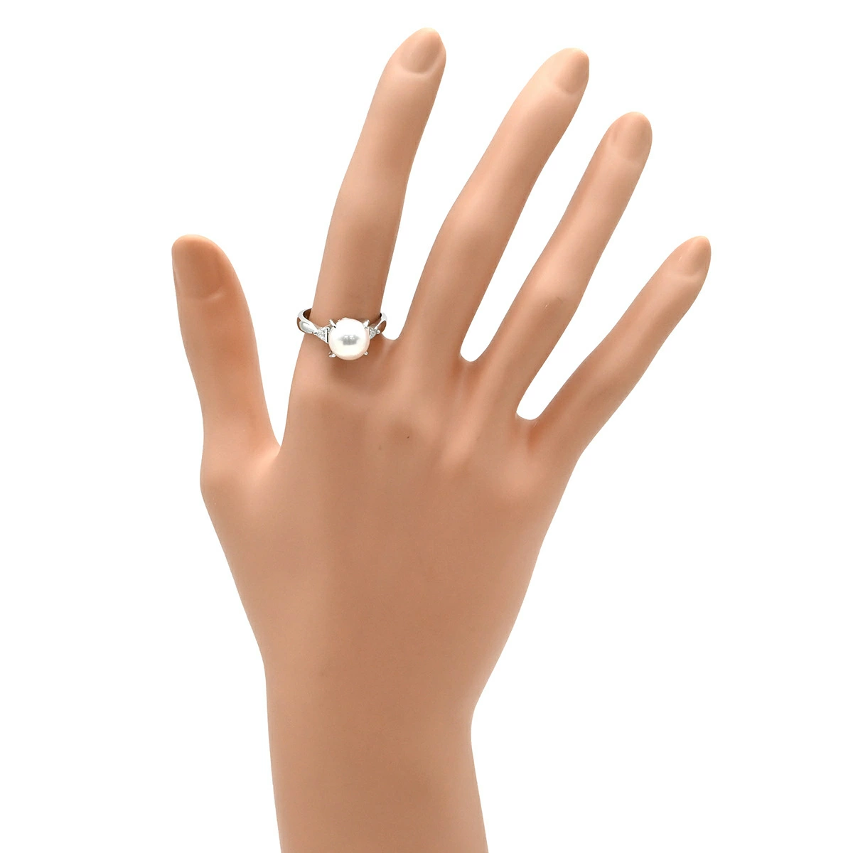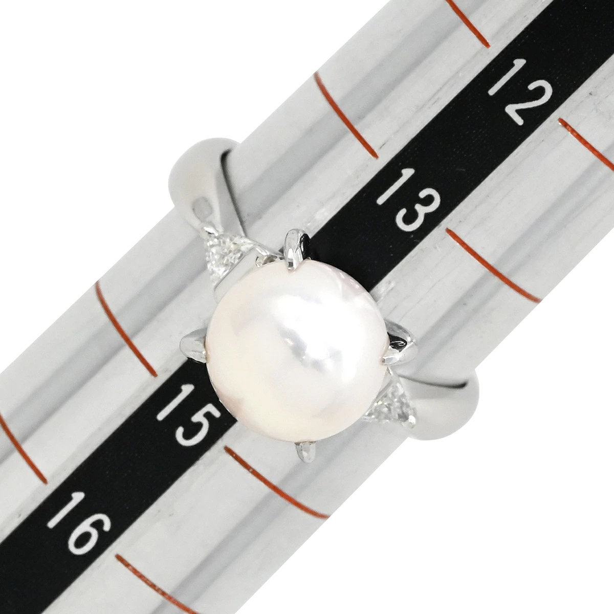 ▲クリックで拡大されますノンブランド NON BRAND リング 指輪 パール ダイヤリング Pt900 パール ダイヤモンド プラチナシルバー 1粒 1P アコヤパール 14号 メンズ レディース ユニセックス定番 人気 美品 【中古】