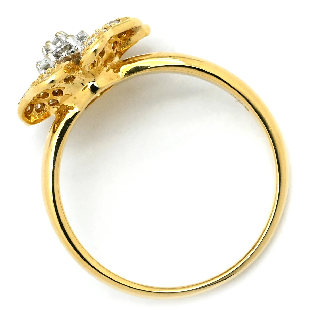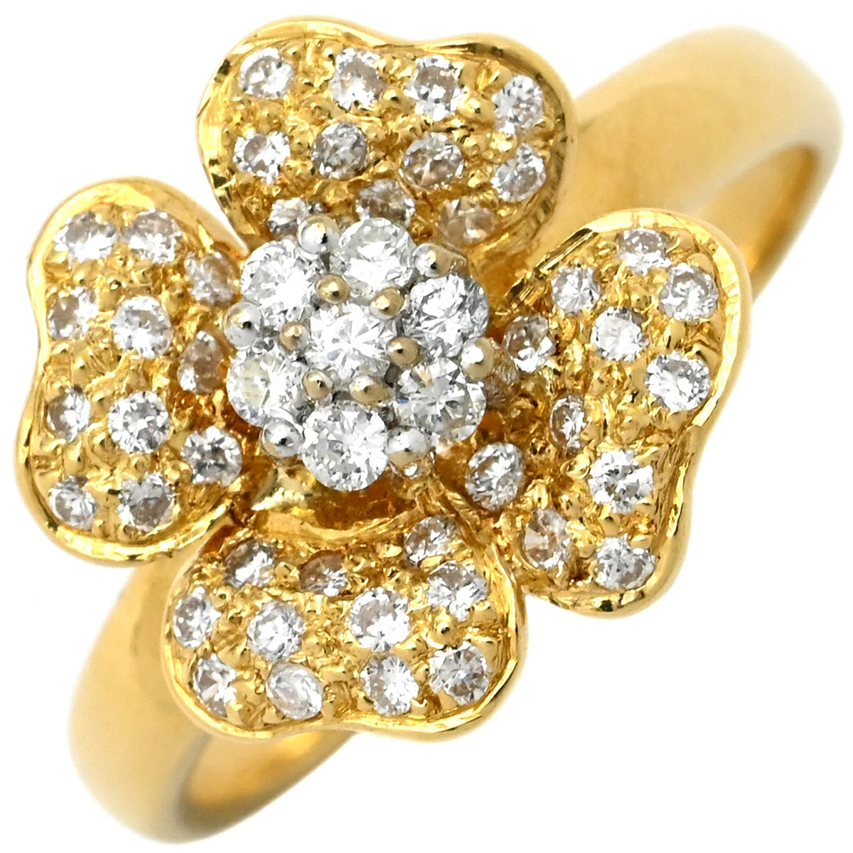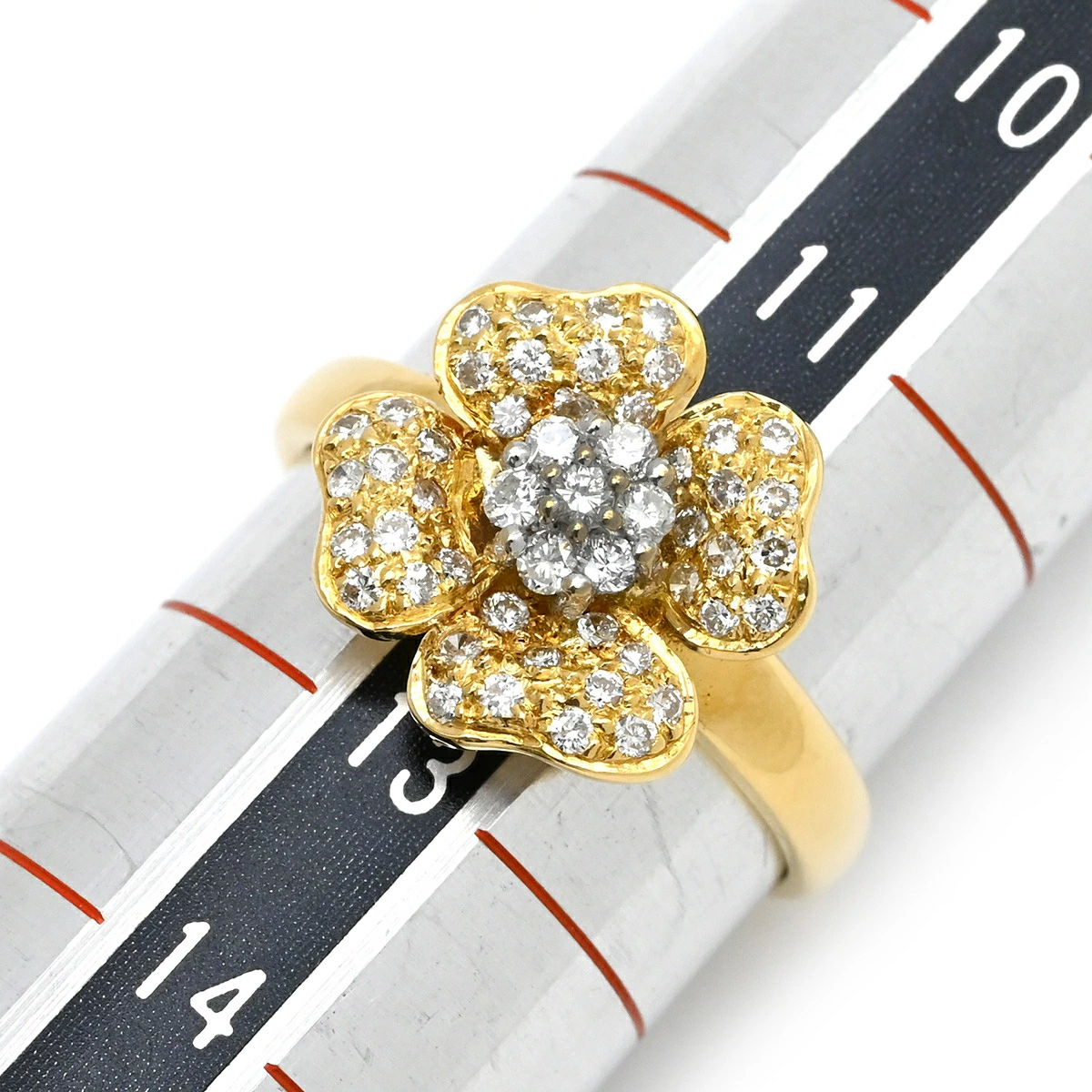 ▲クリックで拡大されますノンブランド NON BRAND リング 指輪 フラワーモチーフ ダイヤリング K18YG ダイヤモンド イエローゴールド Au750 18K 18金 パヴェ - 12号 レディース定番 人気 美品 【中古】