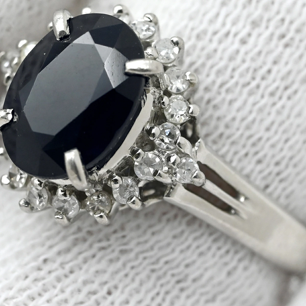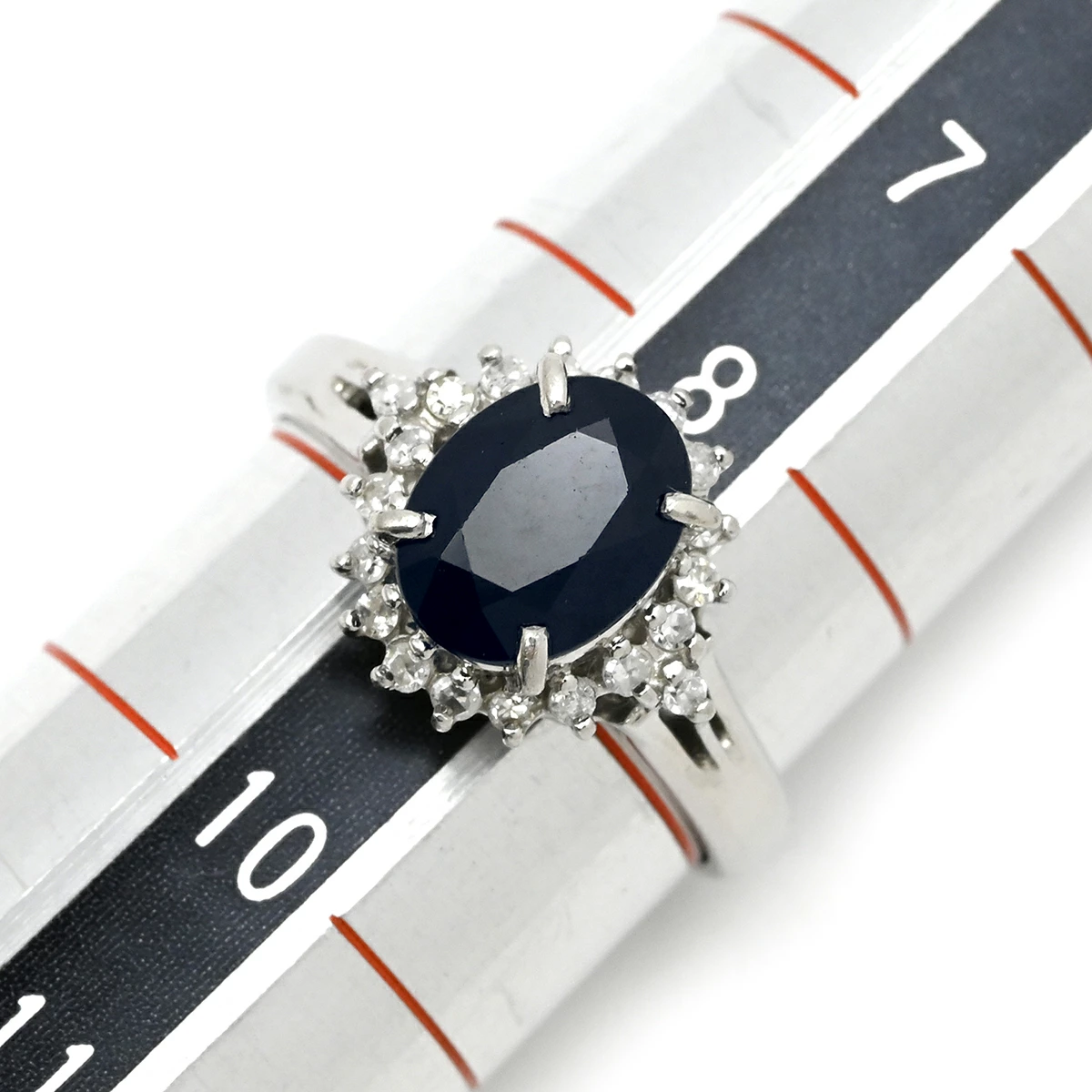 ▲クリックで拡大されますノンブランド NON BRAND リング 指輪 ブルーサファイア ダイヤリング Pt900 サファイア ダイヤモンド プラチナシルバー 青 9号 レディース定番 人気 美品 【中古】