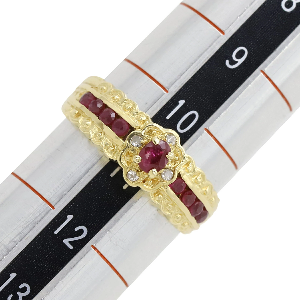 ▲クリックで拡大されますノンブランド NON BRAND リング 指輪 ルビー ダイヤリング K18YG ルビー ダイヤモンド イエローゴールド レッド 赤 1Pダイヤ 11号 レディース定番 人気 美品 【中古】