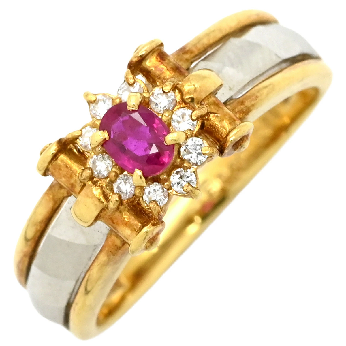 ▲クリックで拡大されますノンブランド NON BRAND リング 指輪 ルビー ダイヤリング K18YG Pt900 ルビー ダイヤモンド イエローゴールド×プラチナシルバー Pt900 イエローゴールド プラチナ コンビ レッド 赤 - 11号 レディース 【中古】
