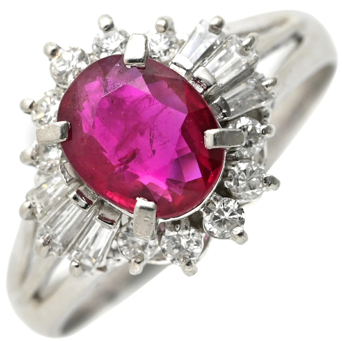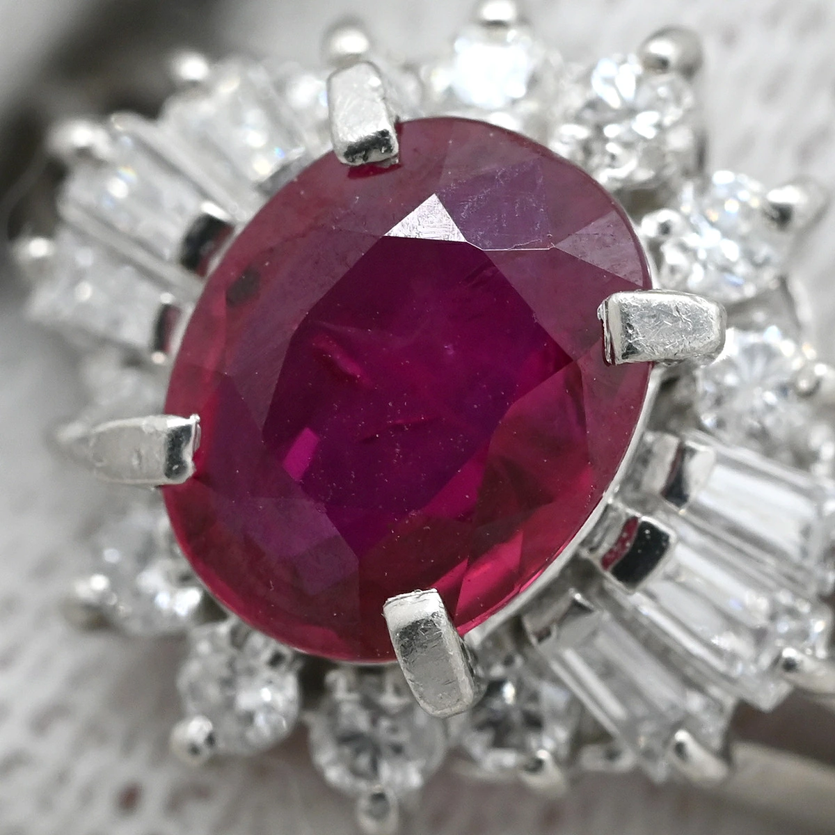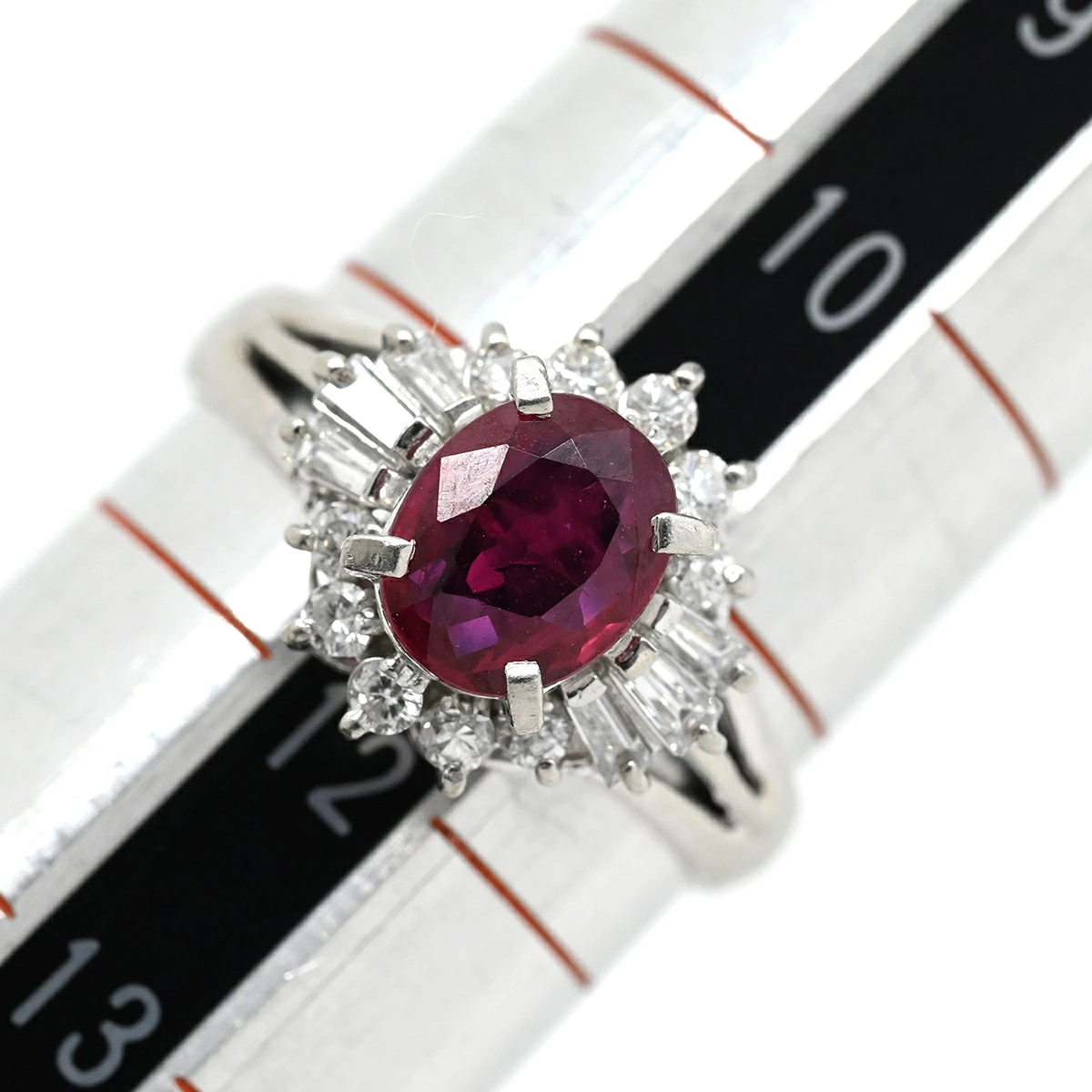 ▲クリックで拡大されますノンブランド NON BRAND リング 指輪 ルビー ダイヤリング Pt850 ルビー ダイヤモンド プラチナシルバー レッド 赤 11号 レディース 【中古】