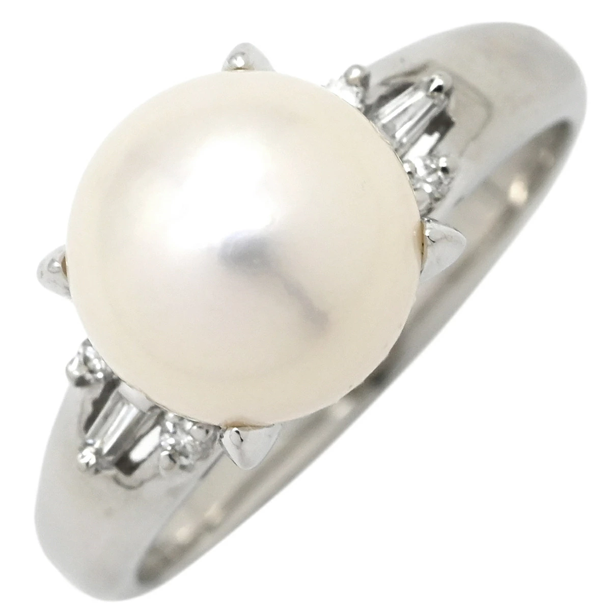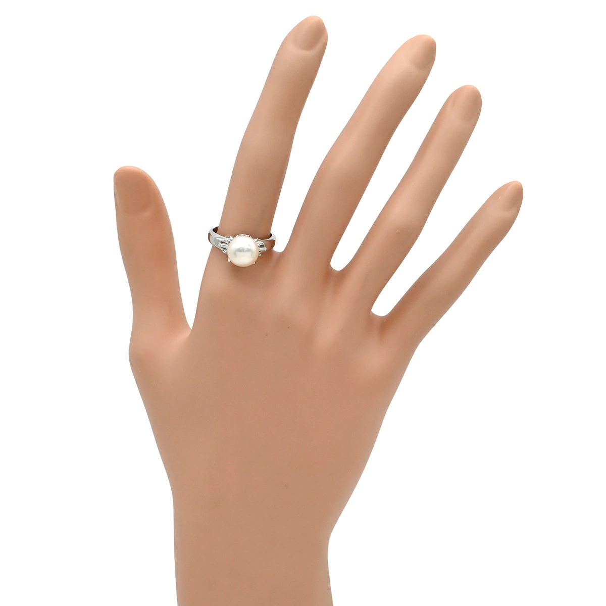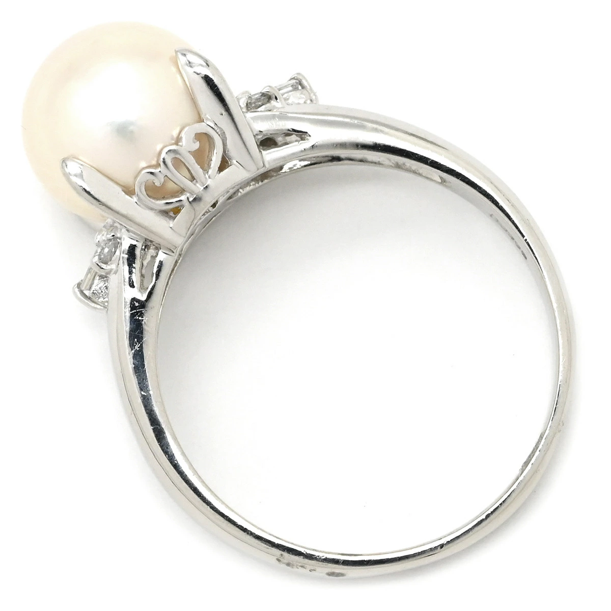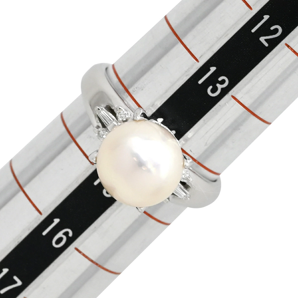 ▲クリックで拡大されますノンブランド NON BRAND リング 指輪 Pt900 パール ダイヤモンド ホワイト×プラチナシルバー プラチナム 1P 1粒 パール 真珠 あこや アコヤ ダイヤ - 14.5号 レディース 【中古】