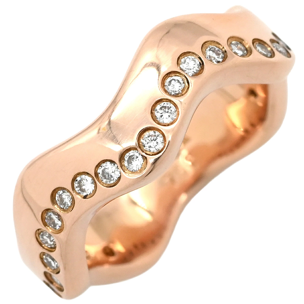 ▲クリックで拡大されますルジアダ RUGIADA リング 指輪 K18PG ダイヤモンド ピンクゴールド RUGIADA Au750 18K 18金 ダイヤ ウェーブライン - 5号 レディース定番 人気 美品 【中古】