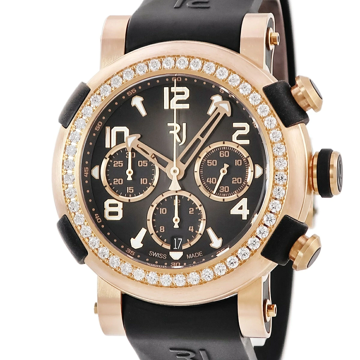 ロマンジェローム ROMAIN JEROME アロー マリン 1M45C.OOOR.1518.RB.1101 K18RG無垢 純正ダイヤ クロノグラフ メンズ 腕時計自動巻き ブラック 【中古】【店頭受取不可】