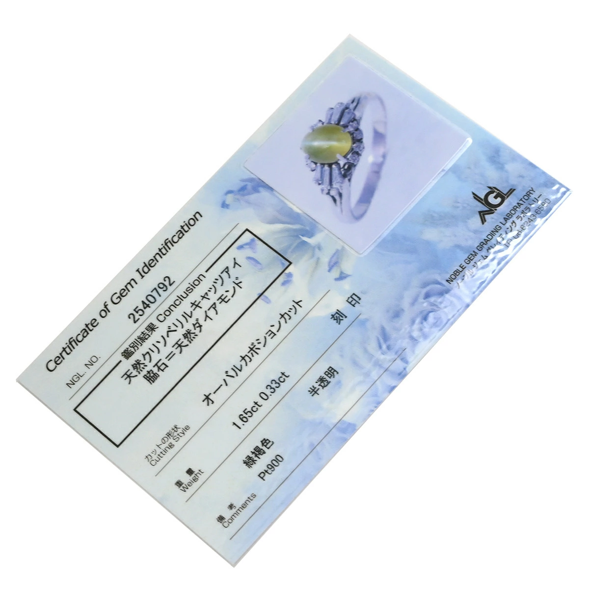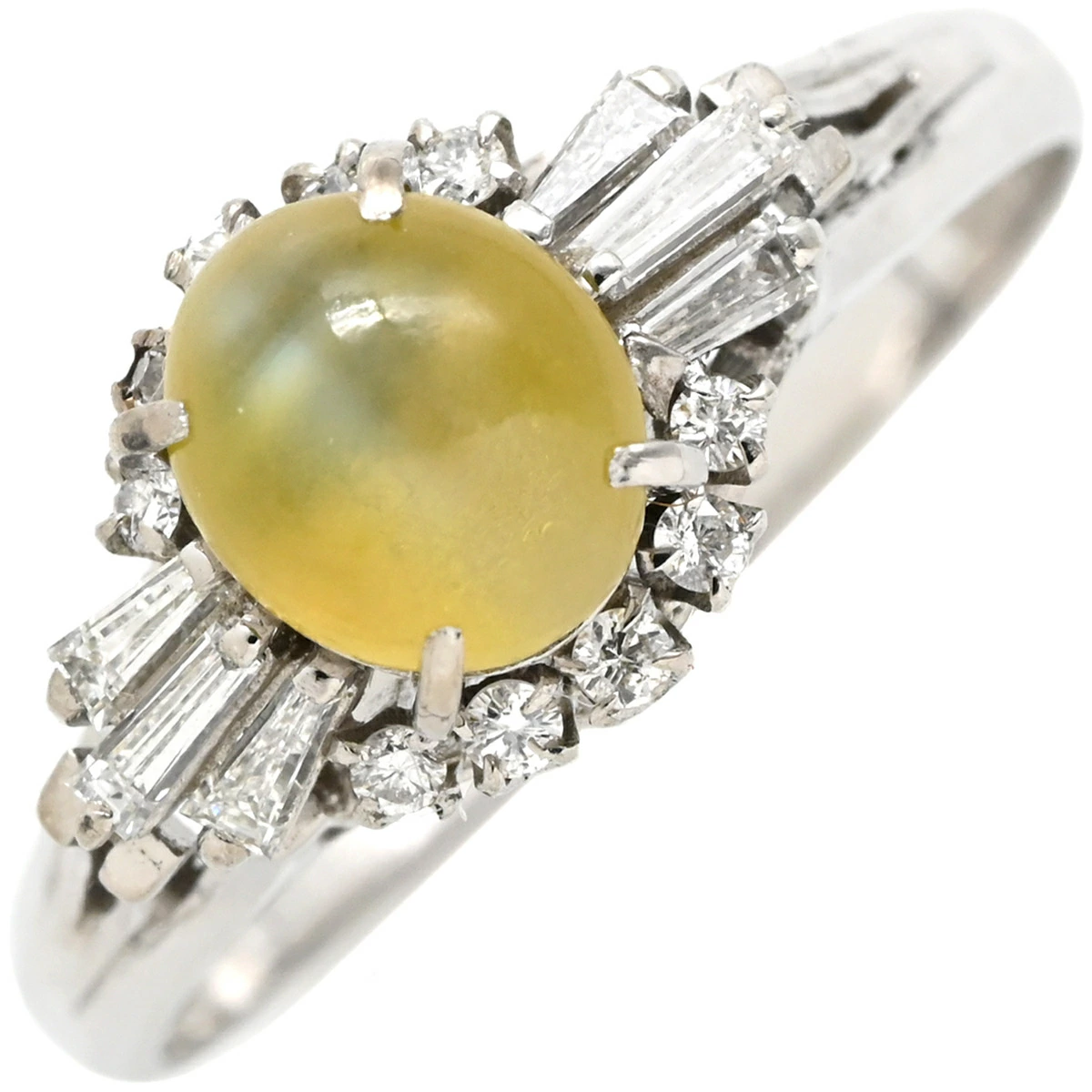 ノンブランド NON BRAND リング 指輪 キャッツアイ ダイヤリング Pt900 クリソベリルキャッツアイ ダイヤモンド プラチナシルバー 猫目石 23号 メンズ 【中古】