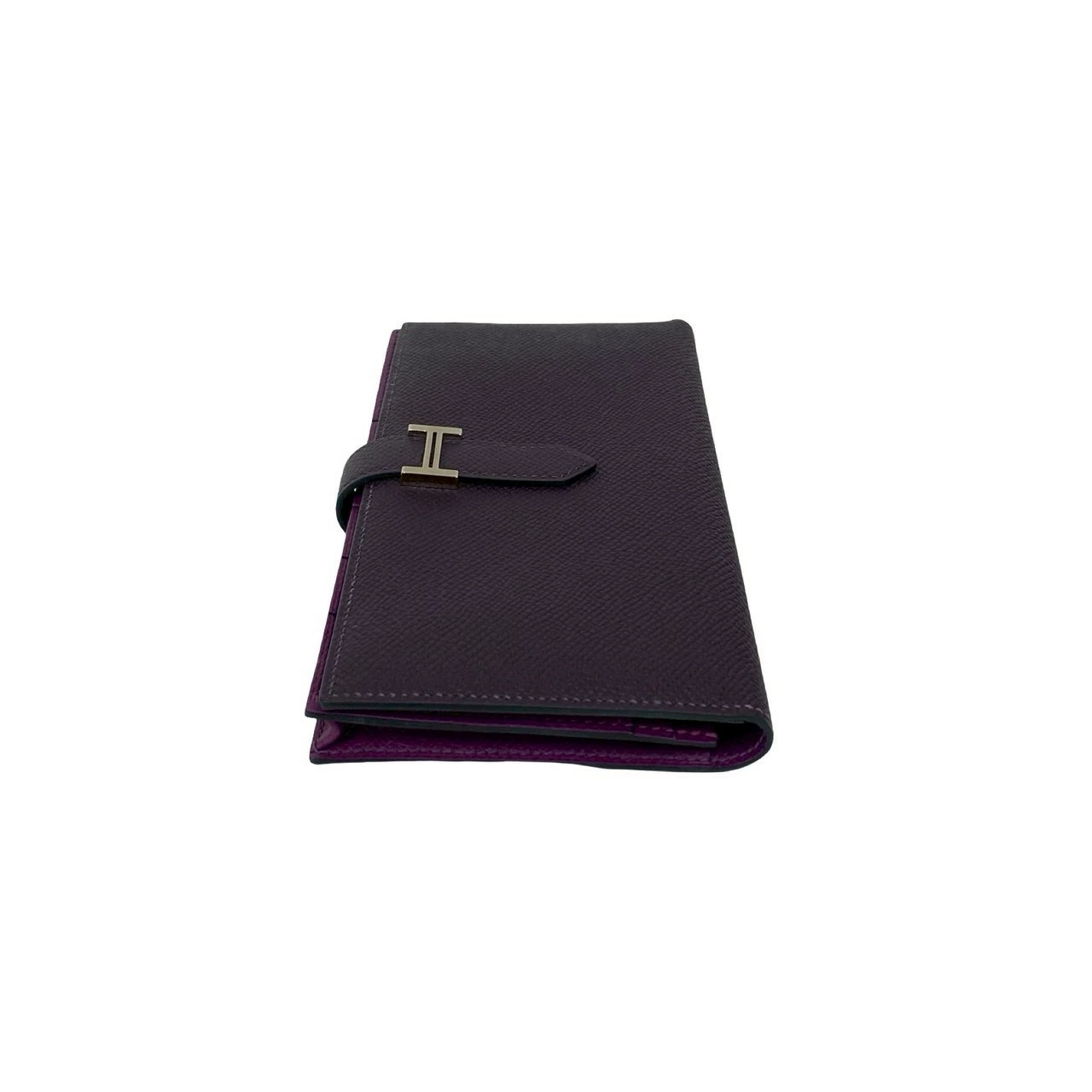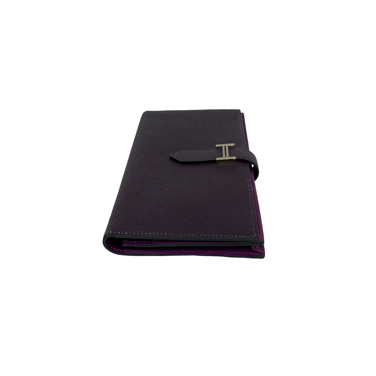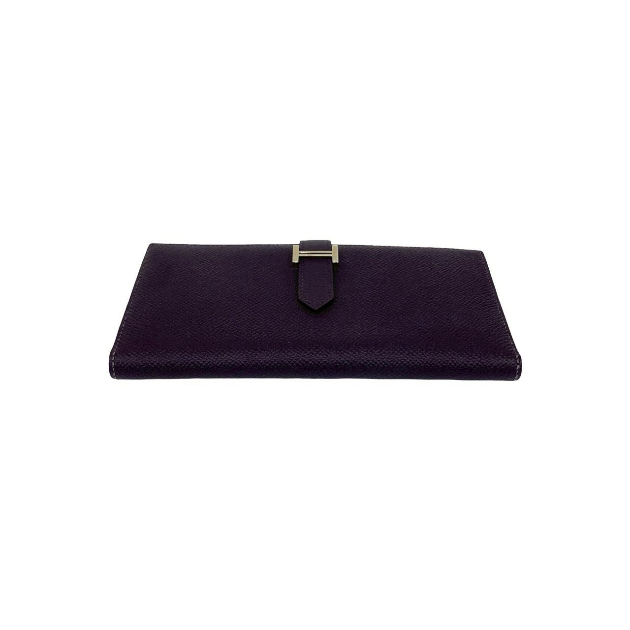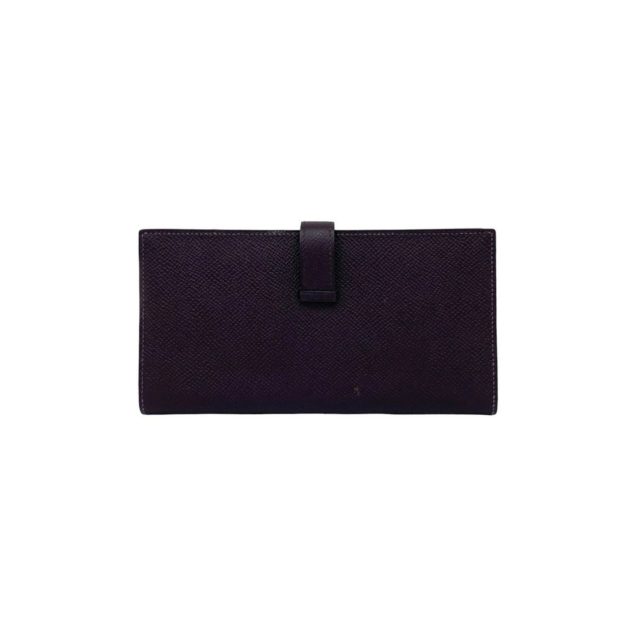Pre-owned, unused, boxed, with "T" stamp. HERMES Bearn Soufflet Leather Bifold Long Wallet in Epsom Leather, Purple, Item No. 33892.