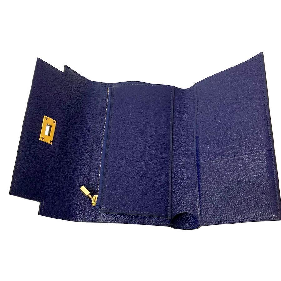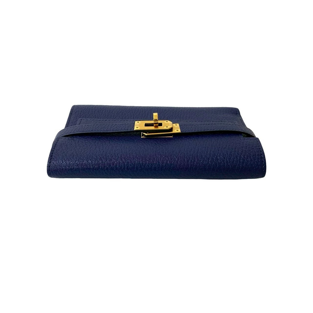 Pre-owned, unused, with bag, C stamp, HERMES Kelly Wallet Medium Chevre Leather Tri-fold Wallet Navy Blue 34958