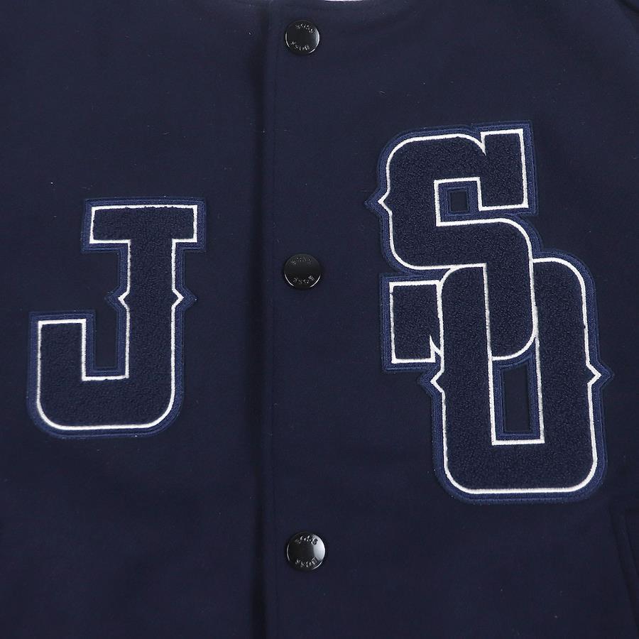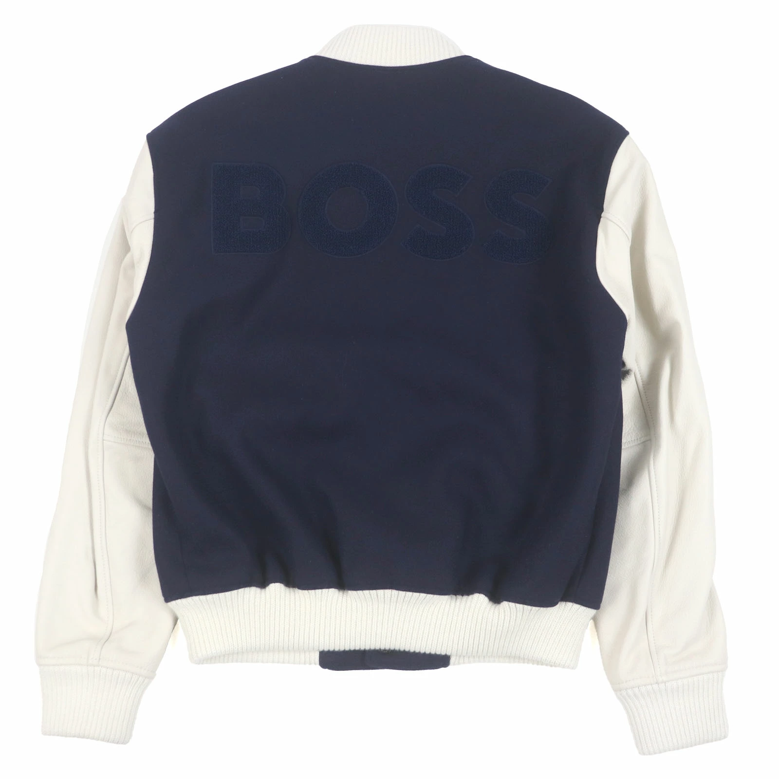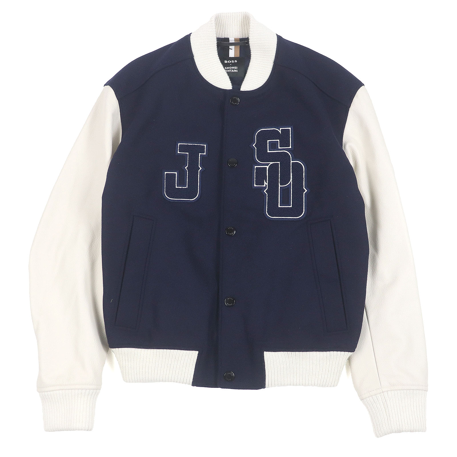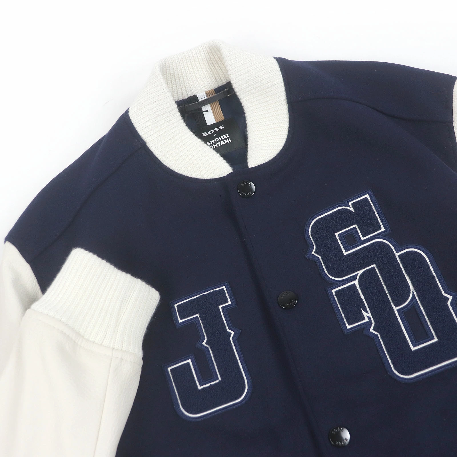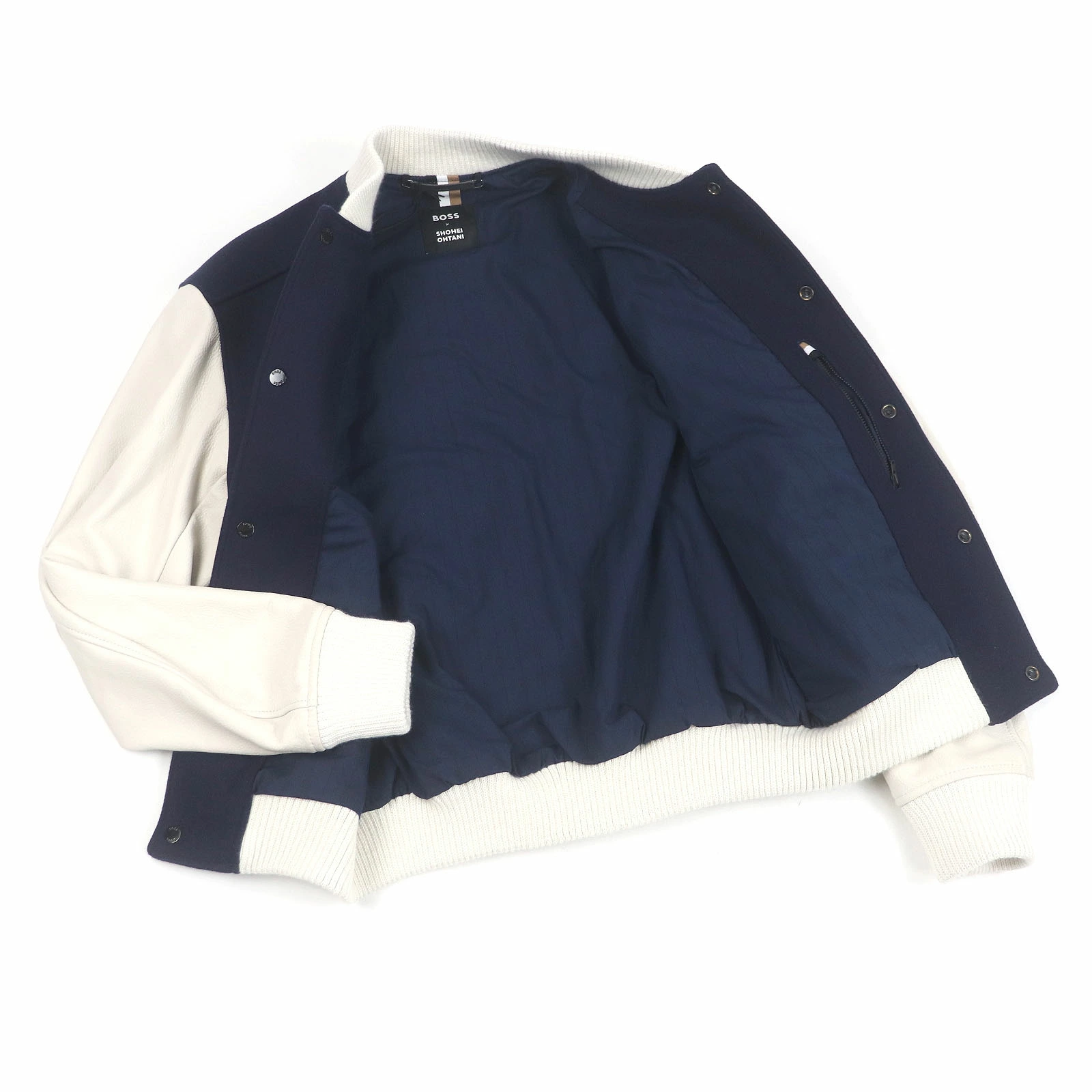 Unused BOSS SHOHEI OHTANI Wool Blend Baseball Jacket with Leather Sleeves, Navy/Ivory, Size 44, Authentic, Men's [Pre-owned]