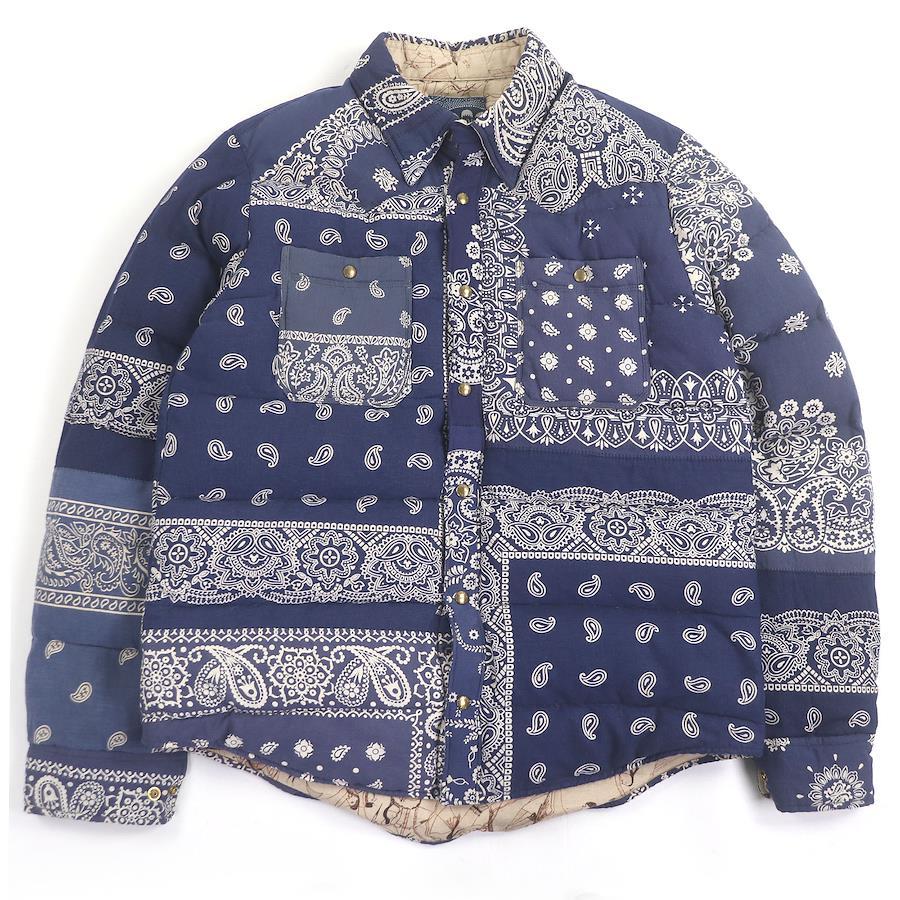 Unused VISVIM KERCHIEF DOWN JKT Paisley Bandana Print Down Jacket, Navy, Size 2, Made in Japan, Authentic, Men's [Pre-owned]