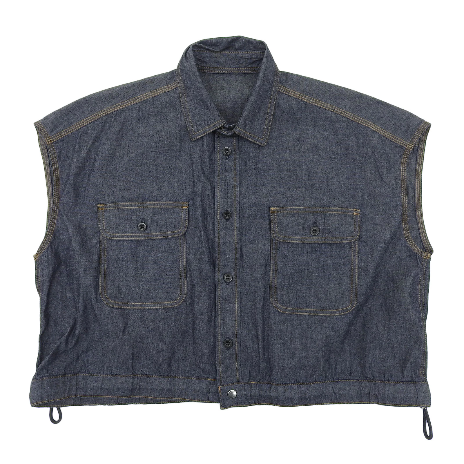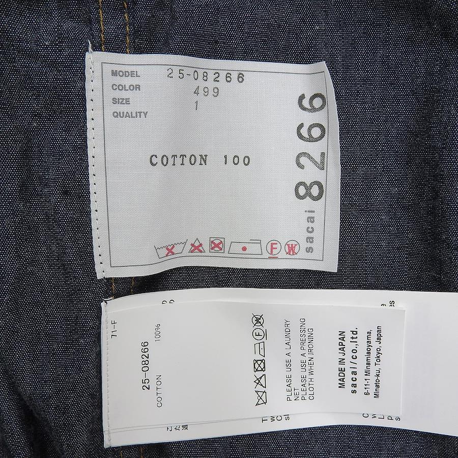 Unused Sacai 25SS 25-08266 100% Cotton Dungaree Shirt Vest, Indigo Blue, Size 1, Made in Japan, Authentic, Women's [Pre-owned]