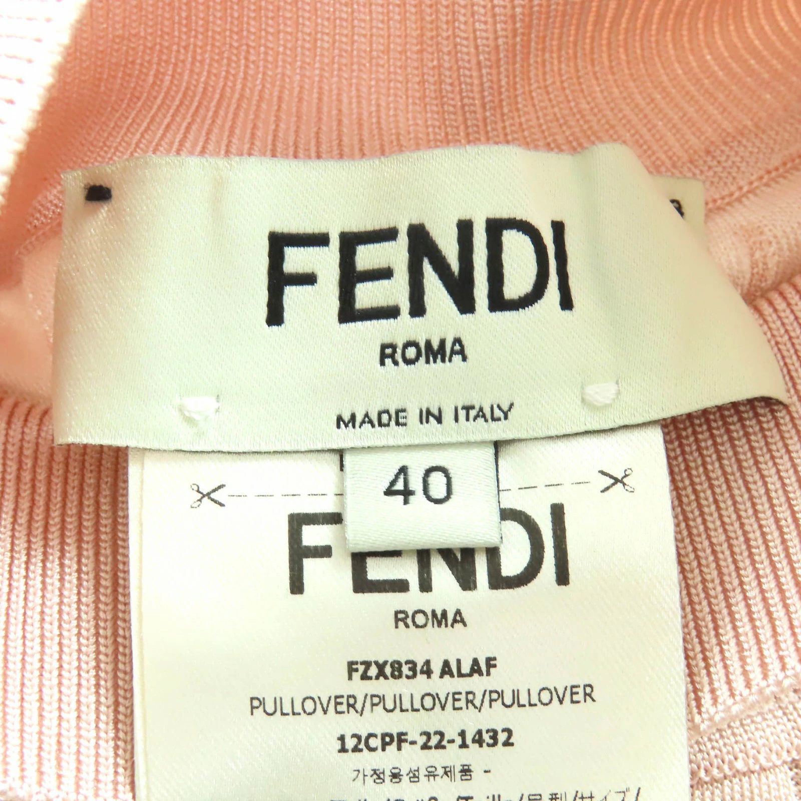 Unused FENDI 2022 FZX834 FF pattern striped cropped high neck long sleeve knit top, pink, size 40, authentic, made in Italy, women's [pre-owned]