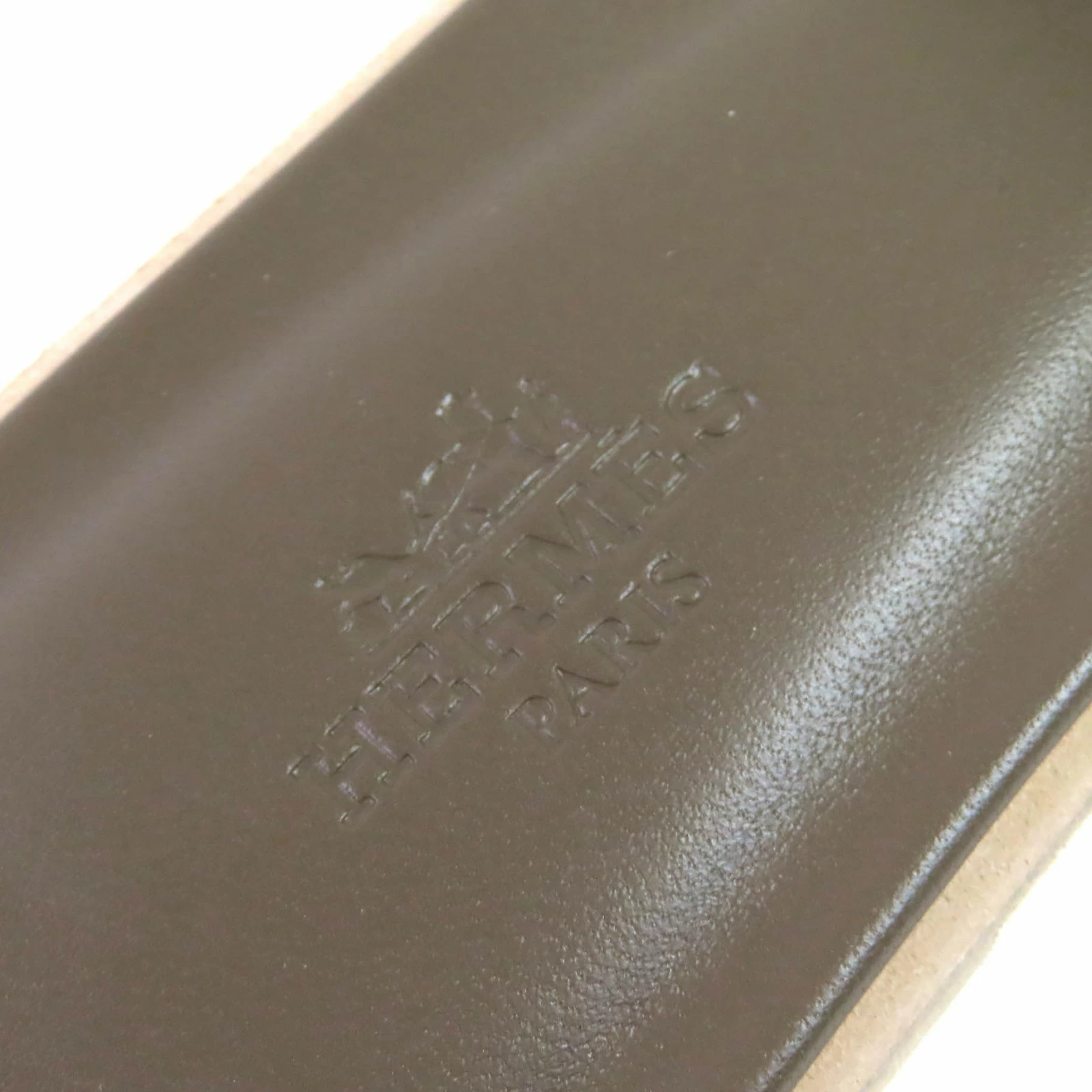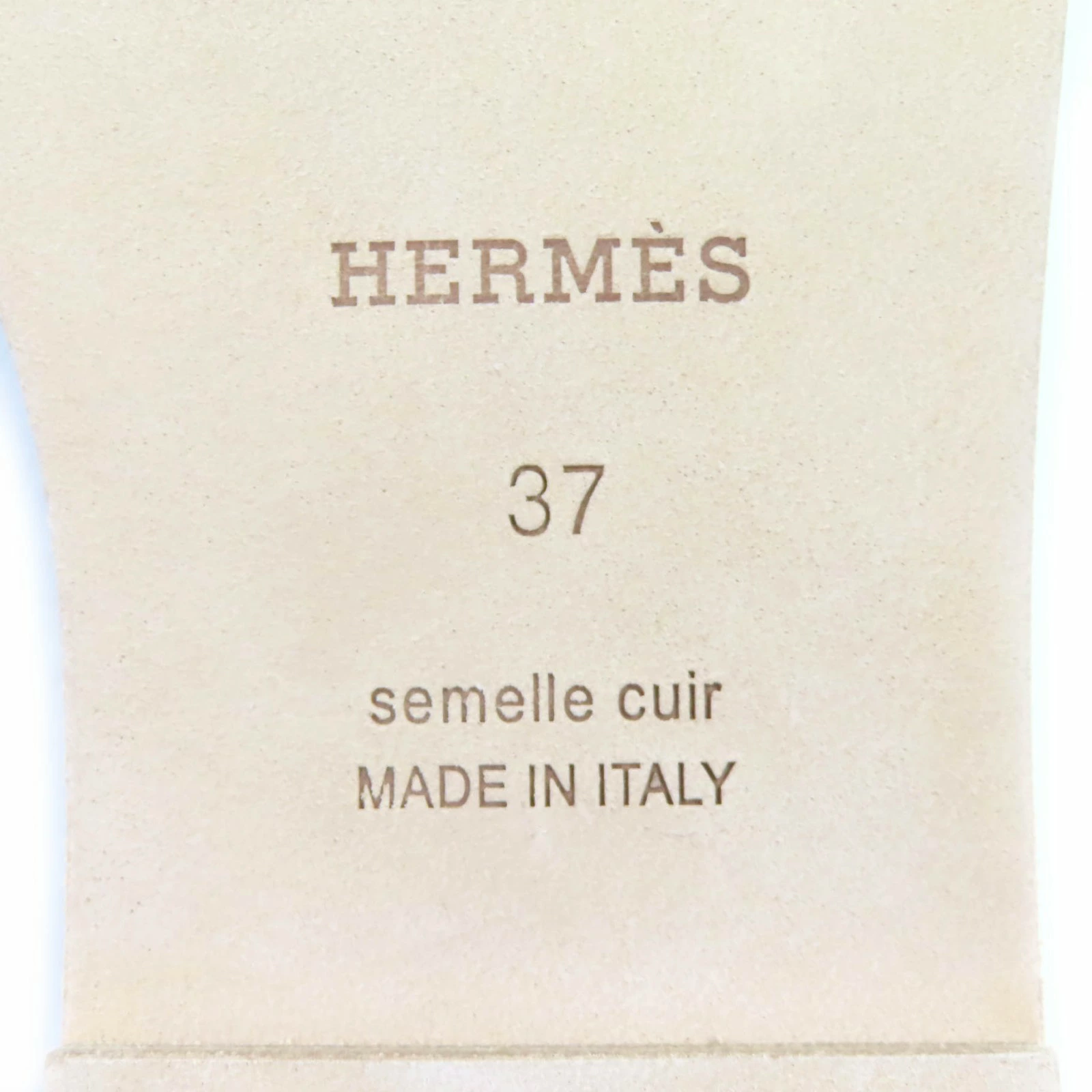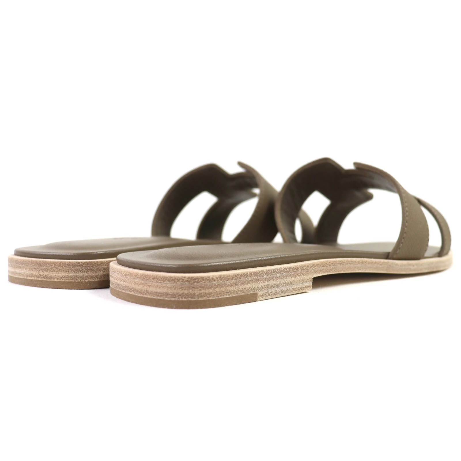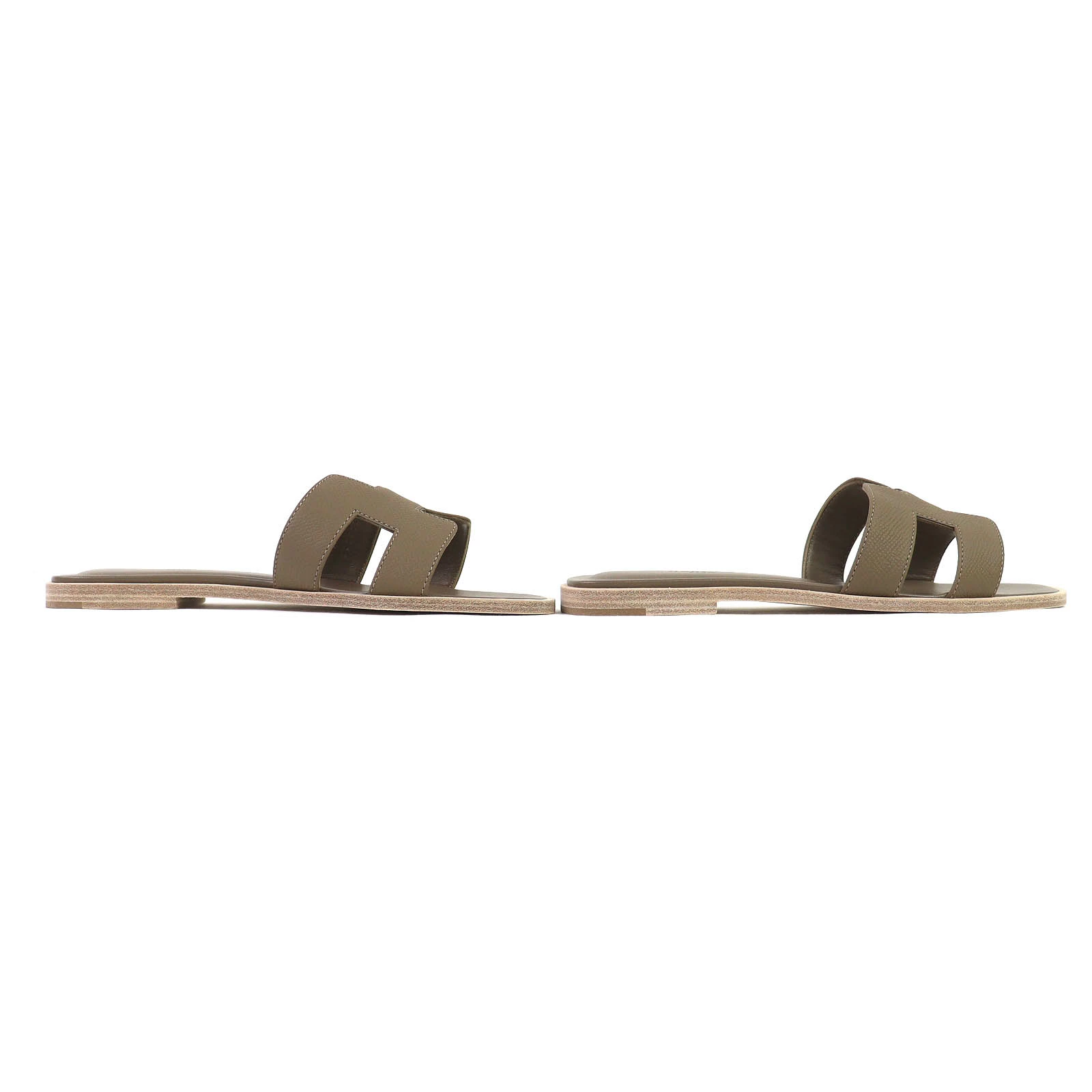 Unused HERMES Oran Etoupe H Logo Leather Flat Sandals/Mules, Size 37, Made in Italy, with Box and Dust Bag. Pre-owned.