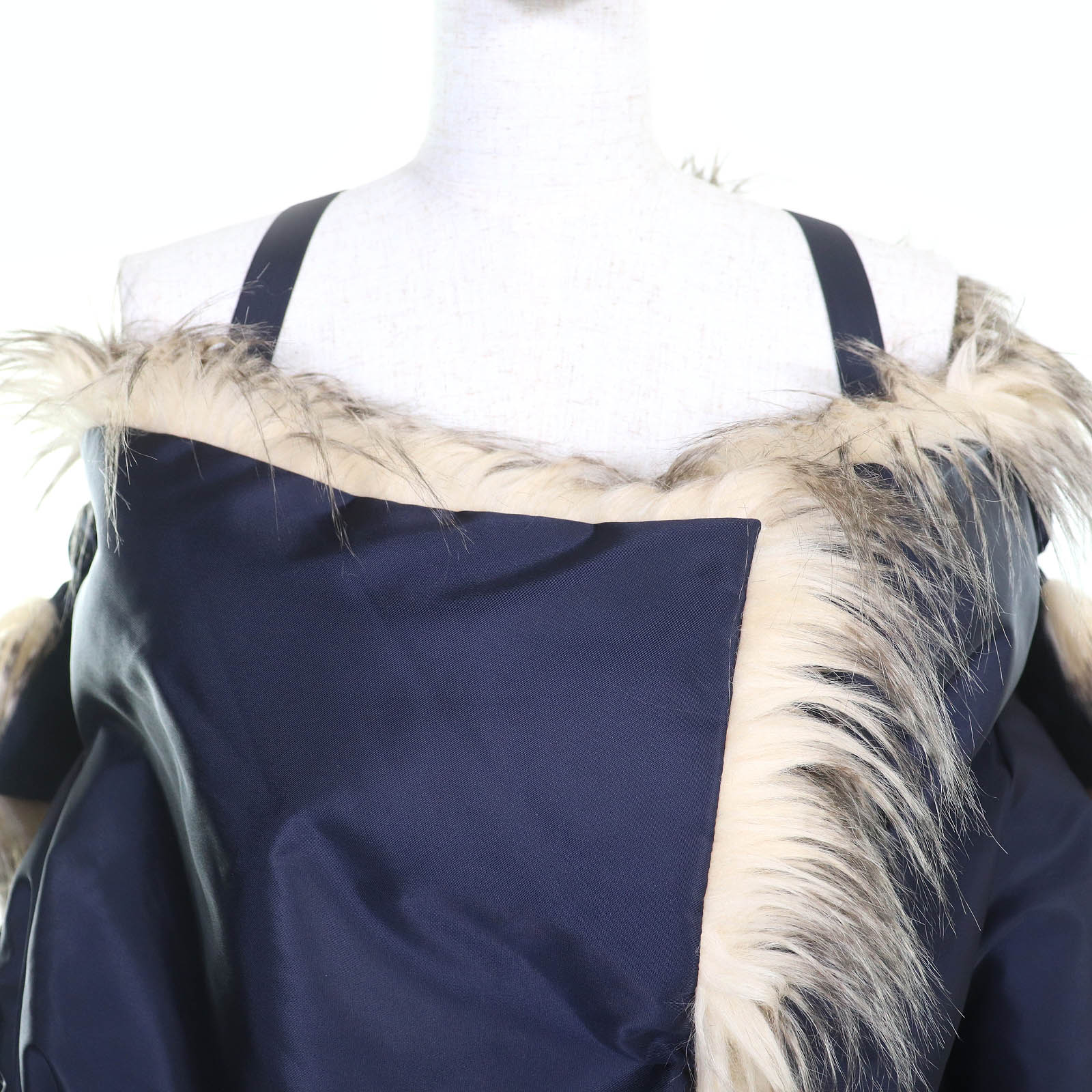 | 素材 (material) | 表地:リサイクルポリアミド100% 裏地:モダクリル52% :アクリル35% :ポリエステル13% 袖裏地:リサイクルポリアミド100% 中綿:ポリエステル55% :リサイクルポリエステル45% 皮革部分:牛革 | ||||||||||||||||