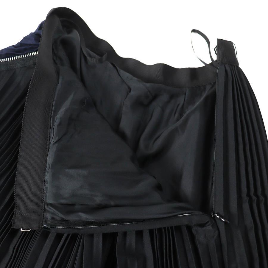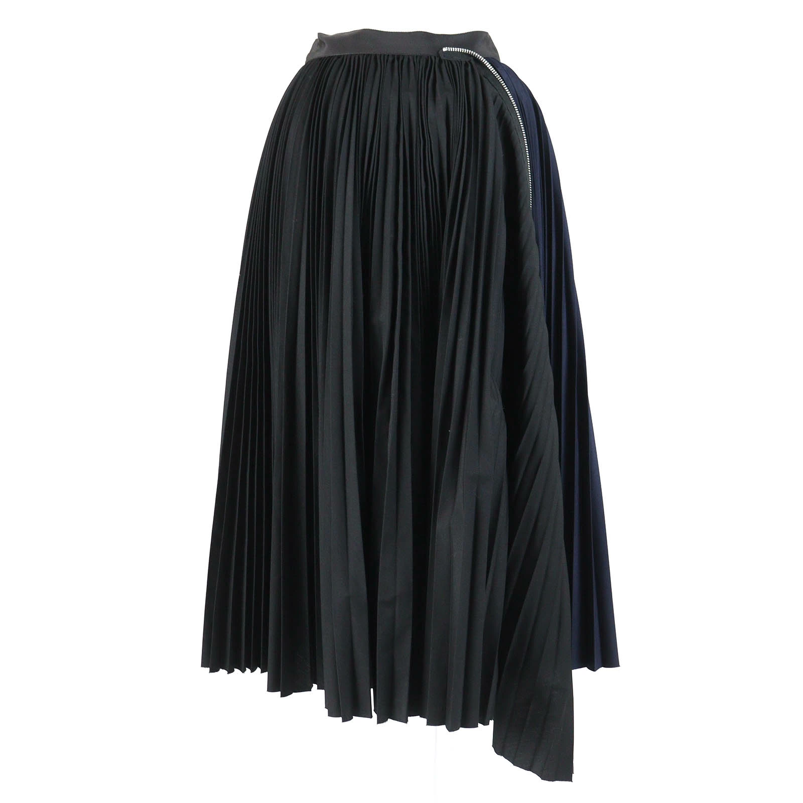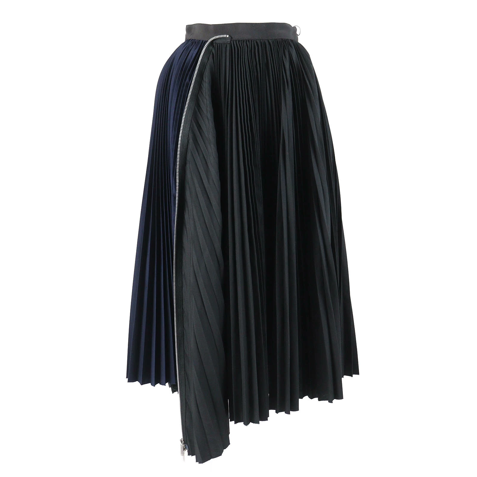 Unused Sacai 24SS SCW-086 Cotton Poplin Zipper Skirt, two-tone zip-up pleated skirt in black and navy. Authentic. Women's. Recommended. Pre-owned.