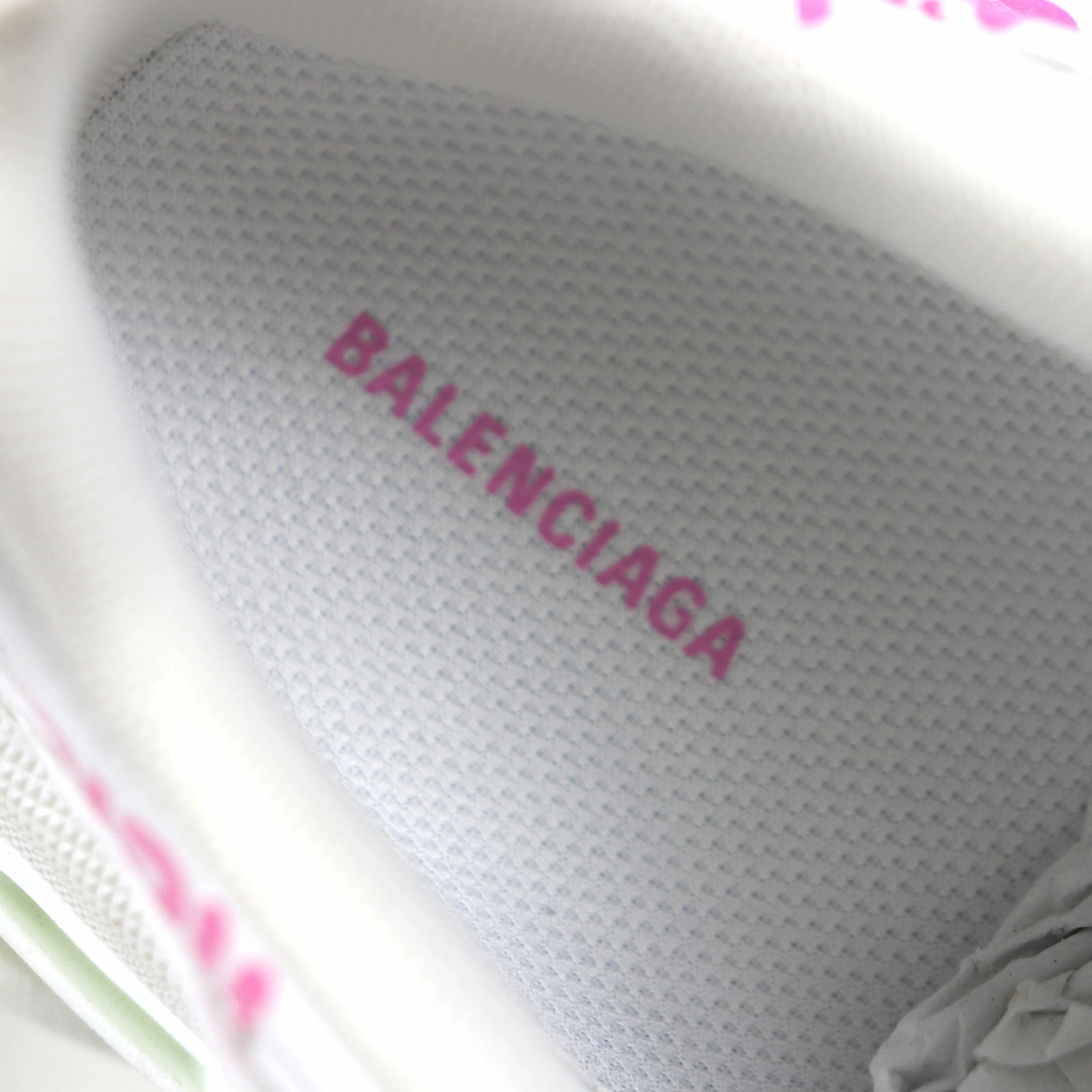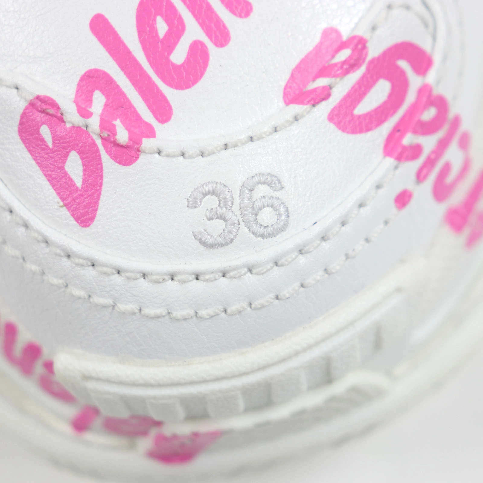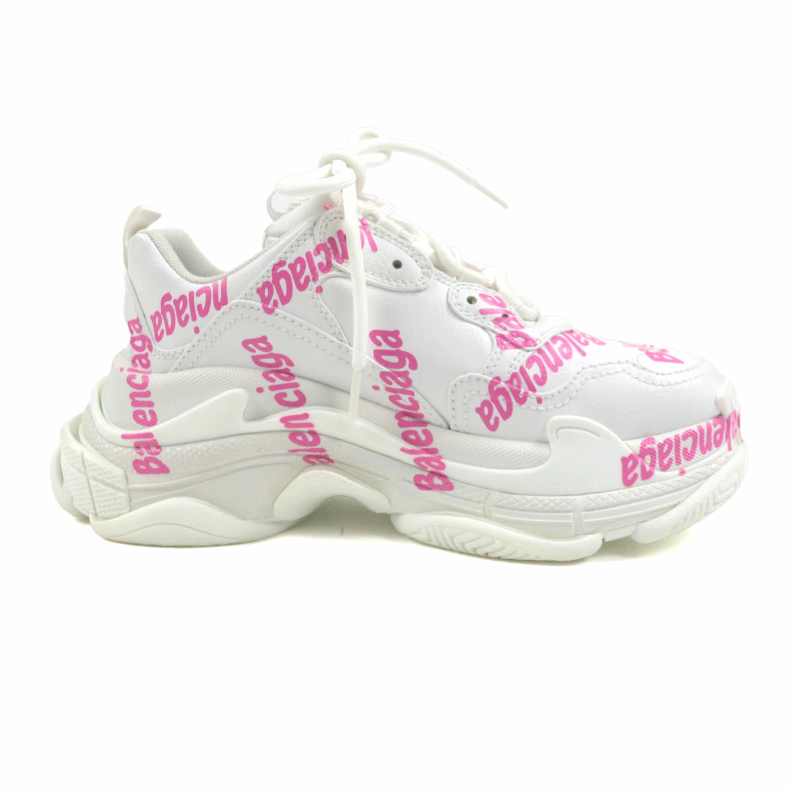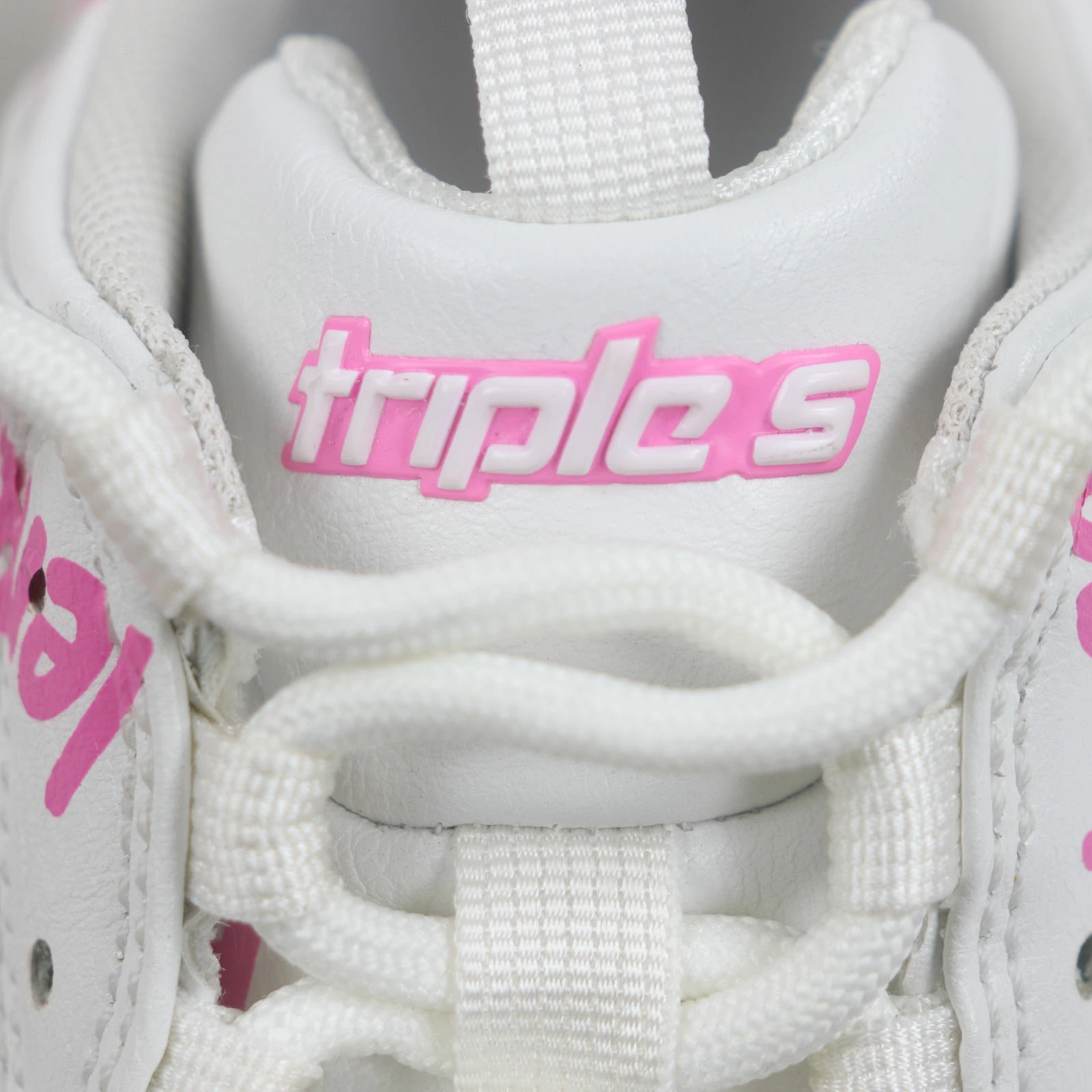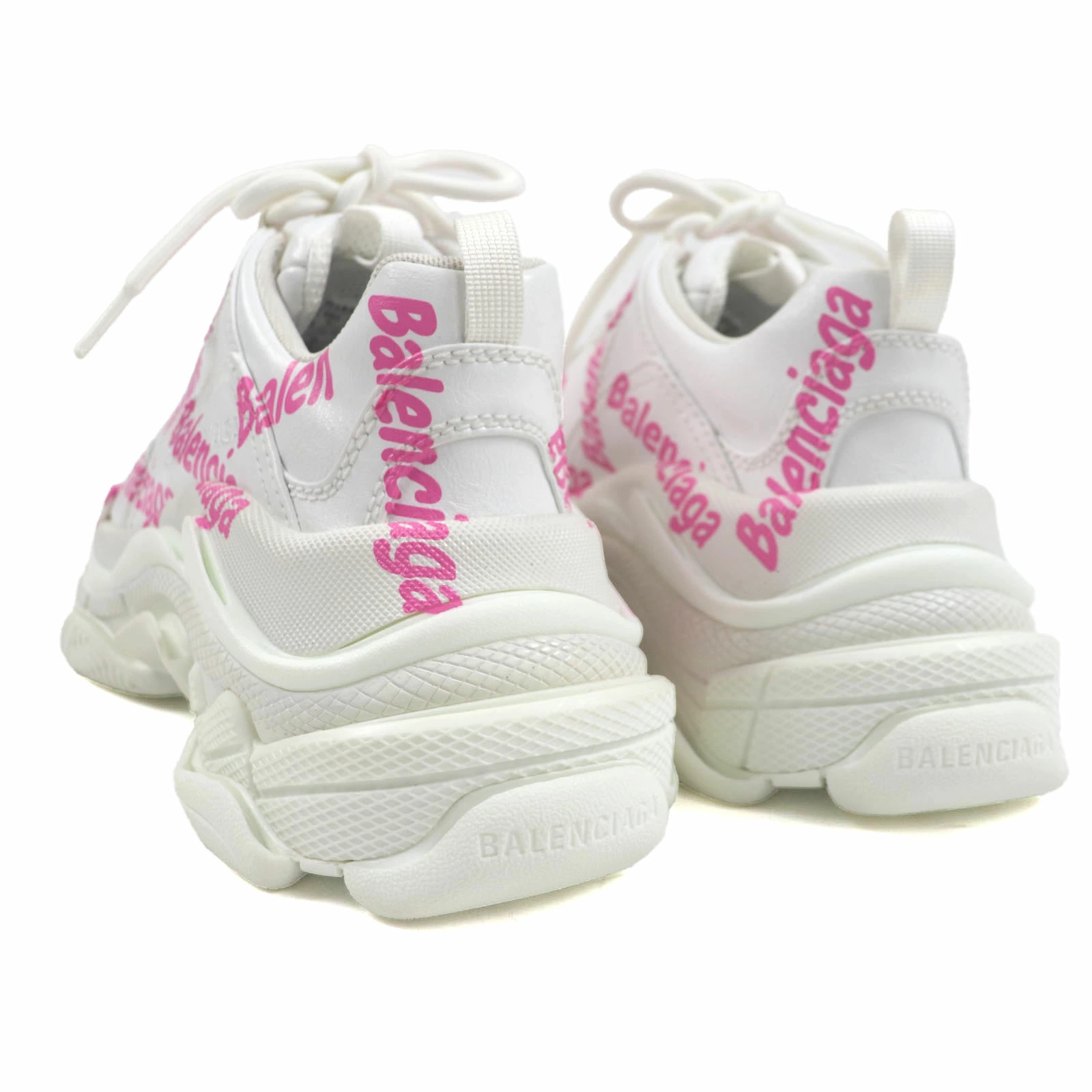 Unused BALENCIAGA 524039 TRIPLE S Leather Sneakers with All-Over Logo Print, White and Pink, Size 36 (24cm), Women's [Pre-owned]