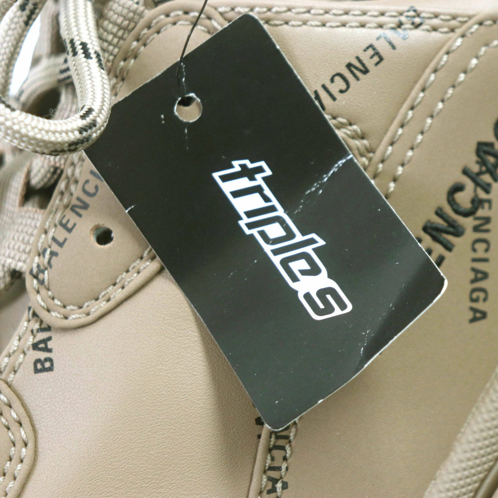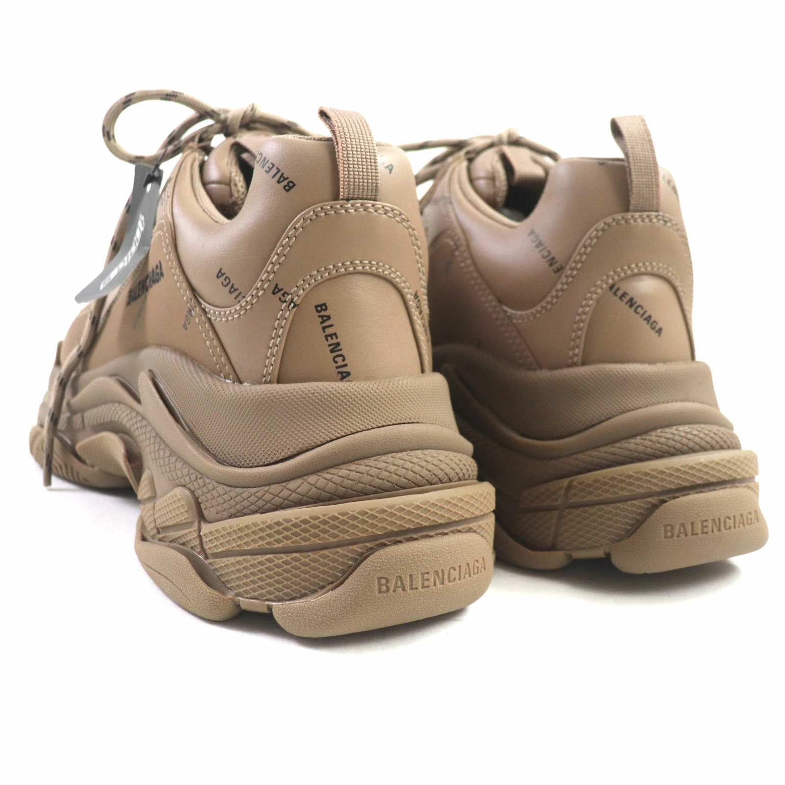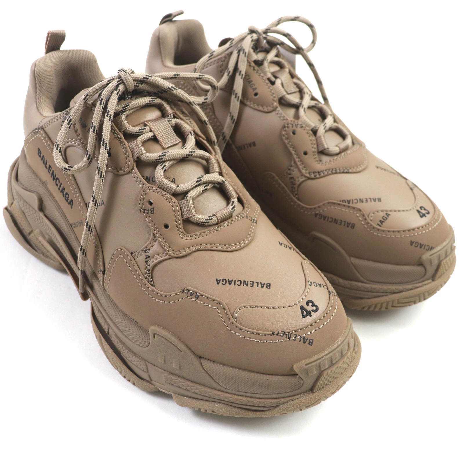 Unused BALENCIAGA 536737 TRIPLE S All-Over Logo Embroidered Leather Sneakers, Brown, Size 43 (28.5cm), Men's [Pre-owned]