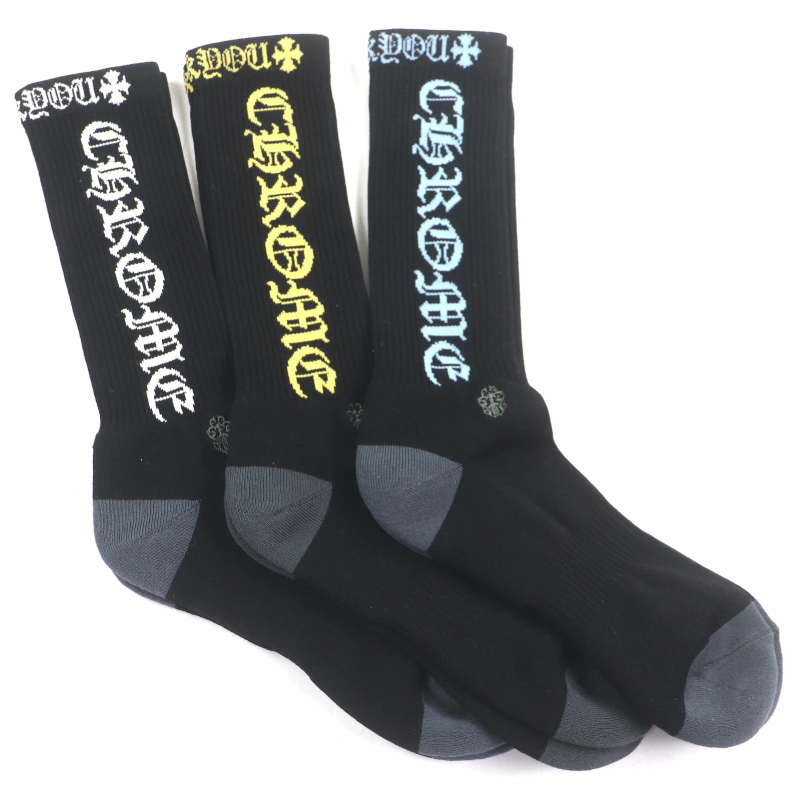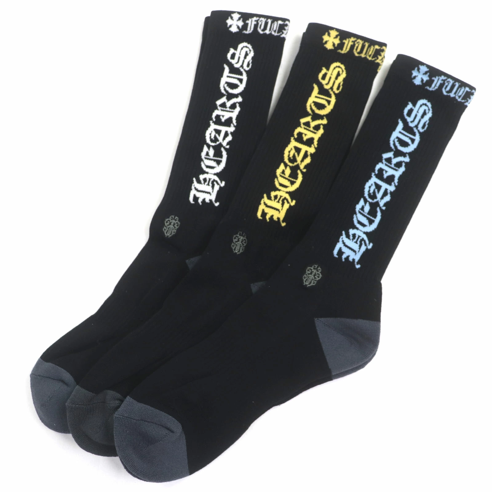 Unused CHROME HEARTS CH logo socks, 3-piece set, black, large (US size 9-13, Japan size 27-30, EU size 43-47), men's, made in Japan. [Pre-owned]