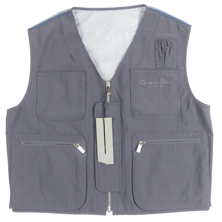 Unused DIOR Homme Multi Pocket Zip-Up Vest (383C670A5771) - Nylon with Embroidered Logo and Mesh Back, Gray, Size 52, Made in Italy, Authentic, Men's [Pre-owned]