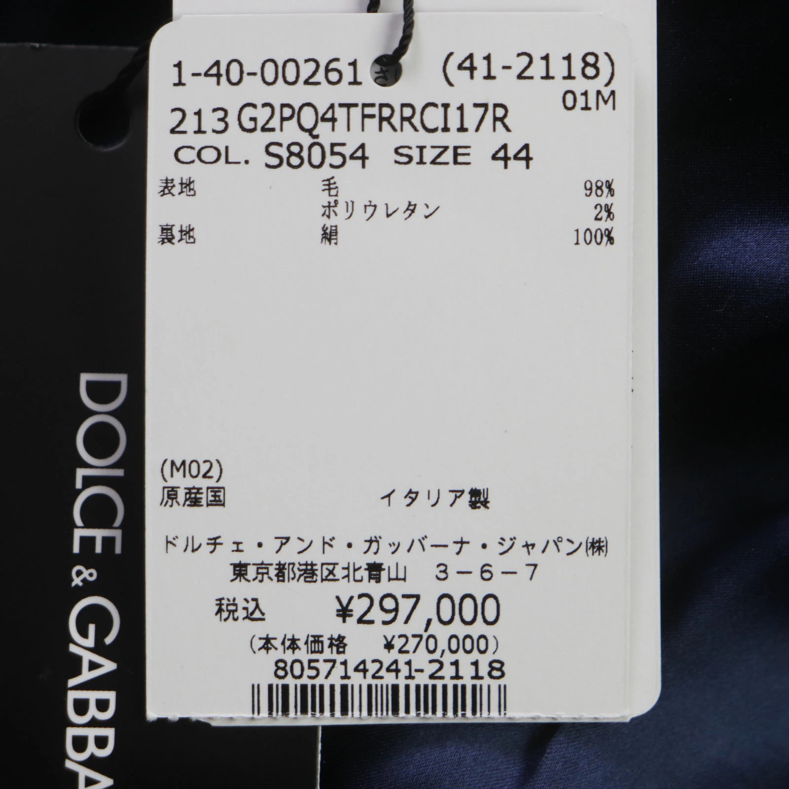 Unused DOLCE & GABBANA G2PQ4T GW13ET SICILIA wool and polyurethane striped suit with 100% silk lining, single-breasted, gray, size 44, made in Italy, authentic, men's. [Pre-owned]